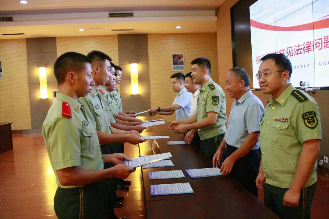 为进一步弘扬法治拥军光荣传统,提高部队官兵法律意识和法治素养,切实维护军人军属合法权益,8月28日,金门路司法所、北京德和衡(青岛)律师事务所共同走进武警青岛支队某部,开展“送法进军营,以法润军心”主题普法活动,为现场80余名官兵送上一堂生动的法治宣讲课,以法治力量守护“最可爱的人”。