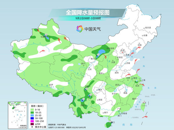 今起三天(9月2日至4日),我国北方地区将迎来降水和冷空气过程,雨量总体不大,但局地需注意防范大雨或暴雨;同时大部地区先后将出现明显大风和降温天气。而在南方,未来一周仍多高温,四川盆地、长江中下游一带还会出现37℃以上的酷热天气,需警惕“秋老虎”。