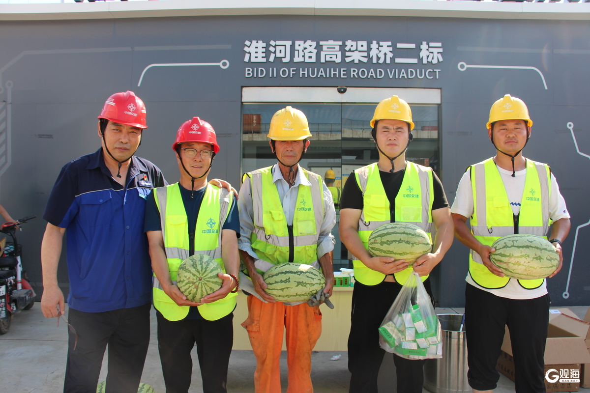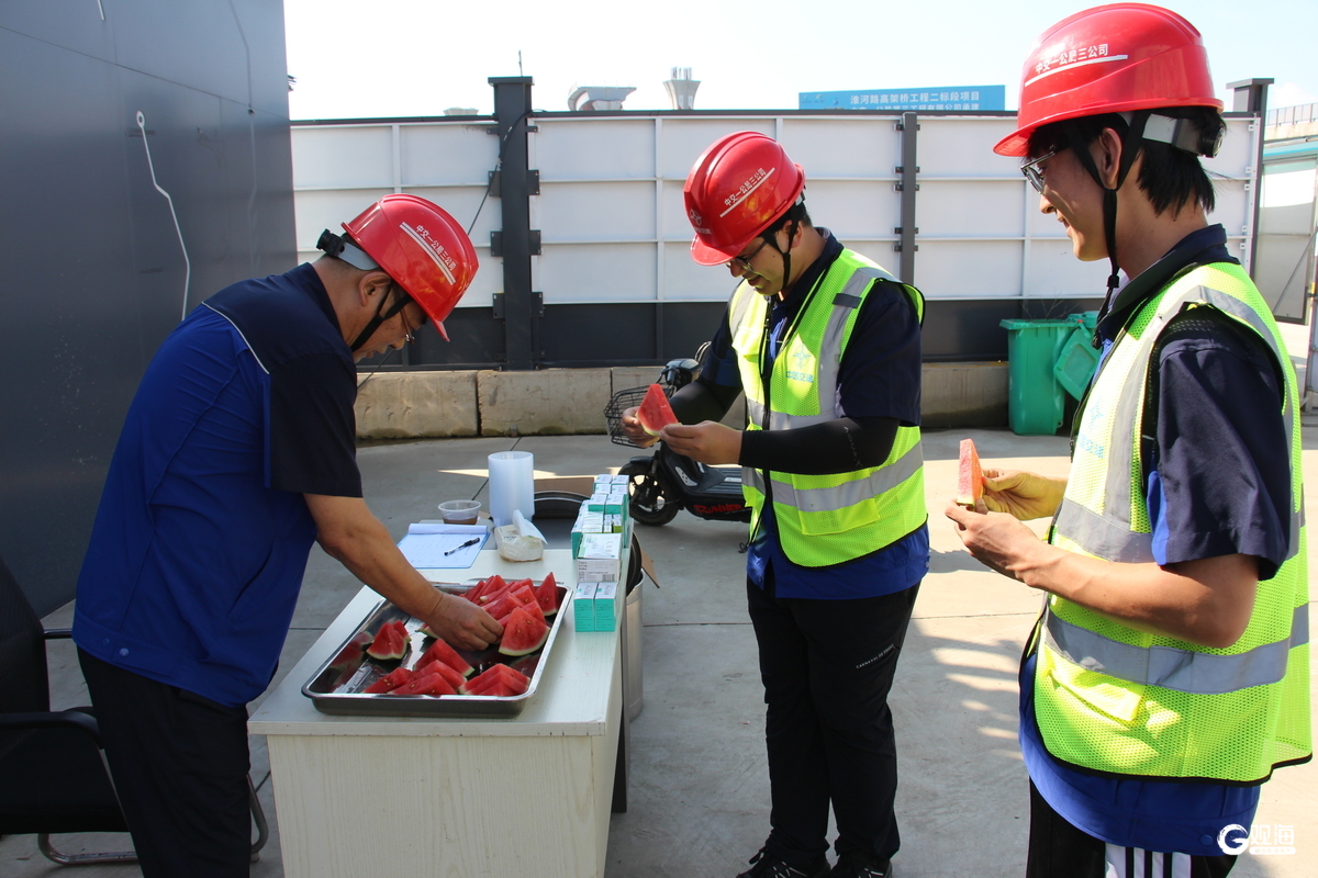 最近一段时间,山东进入持续性高温多雨天气,建筑工程现场一线施工人员面临严峻考验。近日,中交一公局三公司青岛淮河路高架桥2标持续开展“夏日送清凉”慰问活动,做好夏季防暑降温工作,切实维护一线职工的劳动安全和健康权益。在工区现场,项目工会为在持续高温天气下奋战的一线职工们送去西瓜、藿香正气水、风油精、绿豆汤等防暑降温物资。