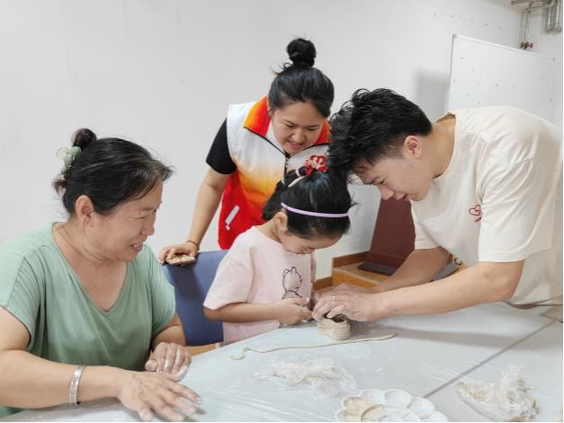 8月23日上午,金门路民政服务站联合知象美育开展了一场别开生面的亲子陶艺体验活动。通过亲子互动比拼和亲子陶艺体验促进了亲子间的沟通交流与相互配合,家长和孩子们在陶艺制作的过程中感受到了亲子合作的乐趣,增进了彼此之间的情感交流,强化了儿童的家庭支持,为儿童健康成长构建了和谐温馨的家庭氛围。