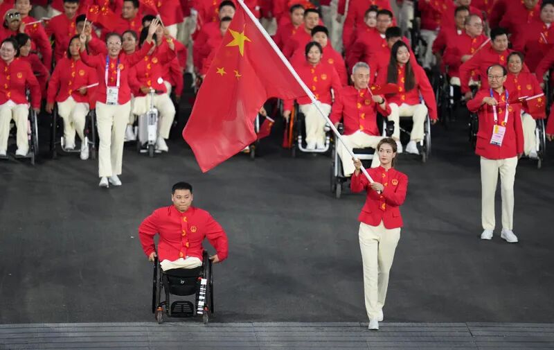 中国体育代表团在巴黎残奥会开幕式上入场。 图源|新华社