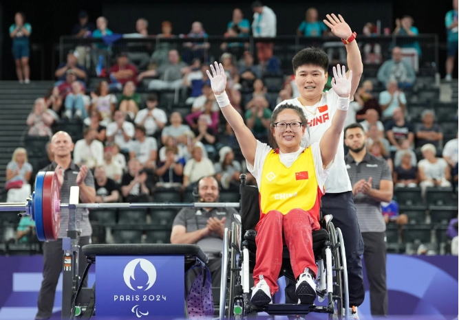 在巴黎残奥会举重女子41公斤级比赛中,崔哲以119公斤的成绩夺得冠军。 图源|新华社