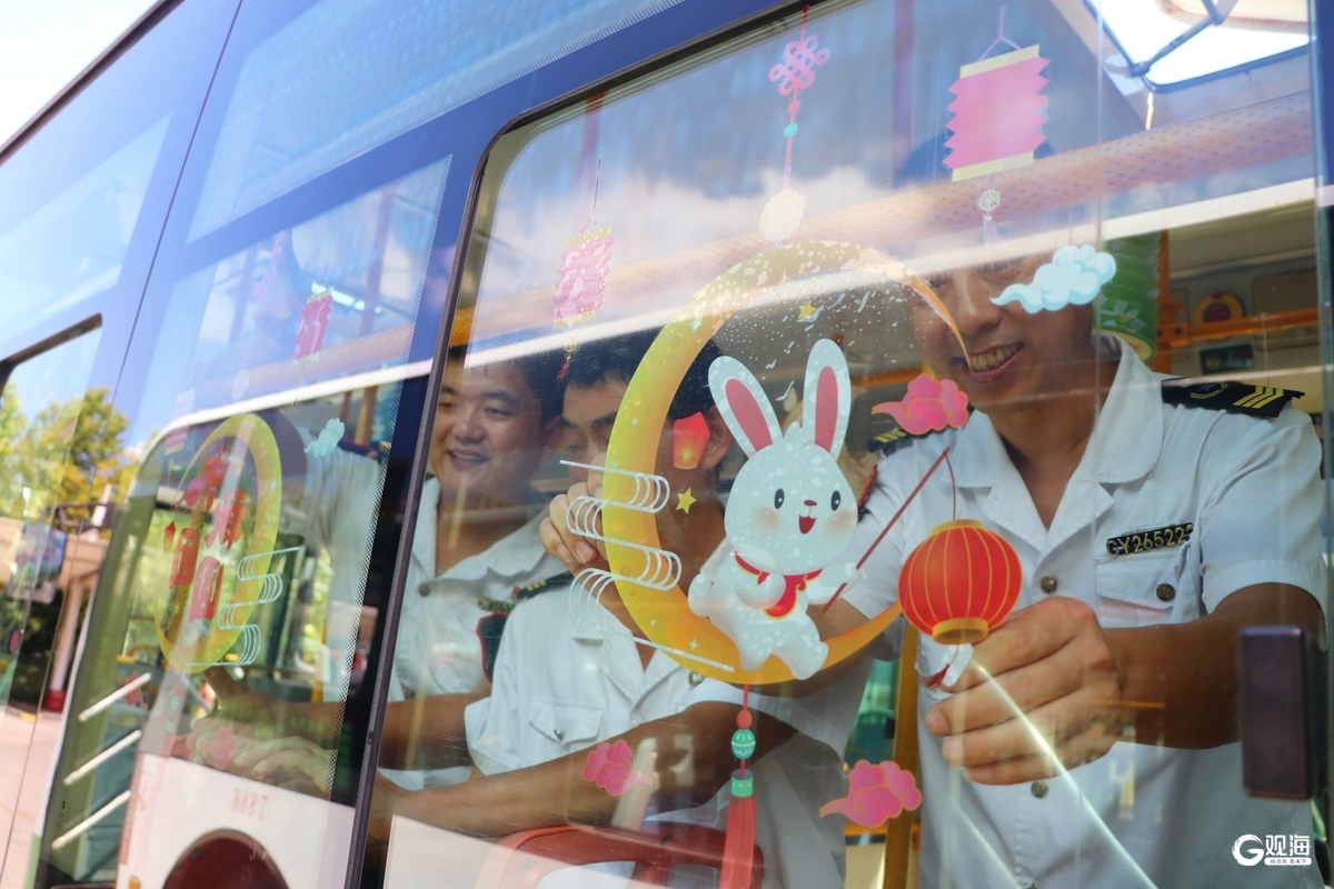 “所有材料都要固定住,免得在运行中脱落”“花灯安装好之后,别忘了打开看一下,发现灯坏了要及时更换”……上午,记者来到李沧巴士公司世博园场站,见到了正在和同事一起忙着布置车厢的389路驾驶员陈海峰。走进车厢,记者看到,车厢里挂满了形态各异的兔子花灯和中秋节挂饰。此外,四周的车窗也贴上了中秋节窗花,节日氛围十分浓厚。