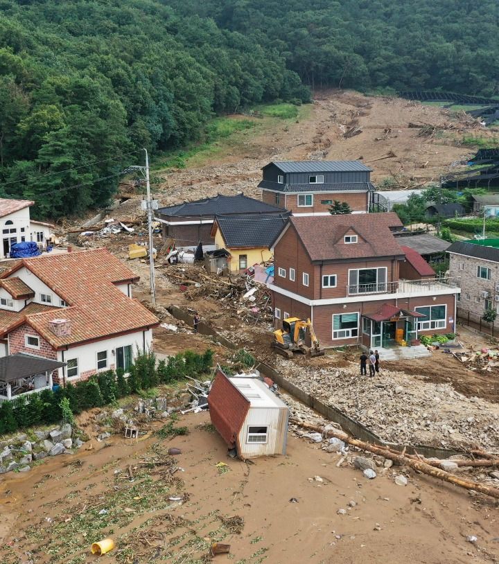 这是8月4日在韩国安城附近拍摄的泥石流灾害现场。新华社/法新
