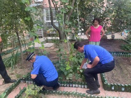 为了解决小区里的一处“毁绿种菜”问题,执法人员和物业工作人员一同来到居民家中,宣传相关法律法规,并告知整改期限。面对居民的质疑,工作人员悉心解释,耐心劝导,最终居民明白了毁绿种菜的危害,接受了批评教育并立即动手整改。