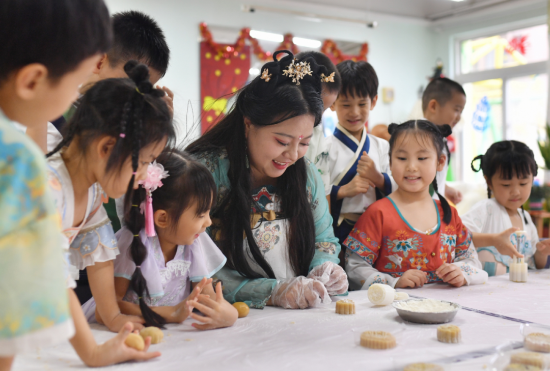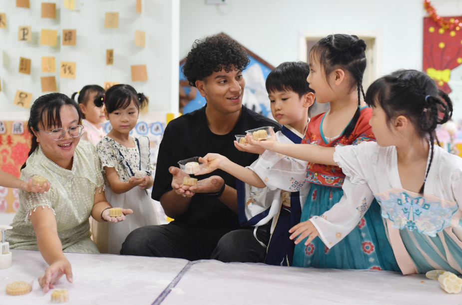 活动伊始,银川西路社区党委书记连俊鹏发表讲话,为社区居民送上节日的祝福。接着,市南区春天幼儿园的小朋友们为居民表演了儿童诗歌朗诵,用稚嫩的声音颂扬着中秋的团圆喜悦。最后,居民们一起猜灯谜、做漆扇,感受中国传统文化。小朋友们还参与了制作月饼的小活动,外国朋友贺达也来到社区和小朋友们一起学习感受中国传统文化。