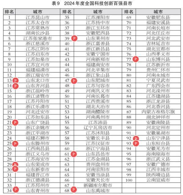 龙口市、齐河县、广饶县、滕州市、荣成市、新泰市、青州市、莱州市、肥城市、昌邑市、禹城市、博兴县、宁津县、桓台县等14地入选2024年度全国科技创新百强县市。