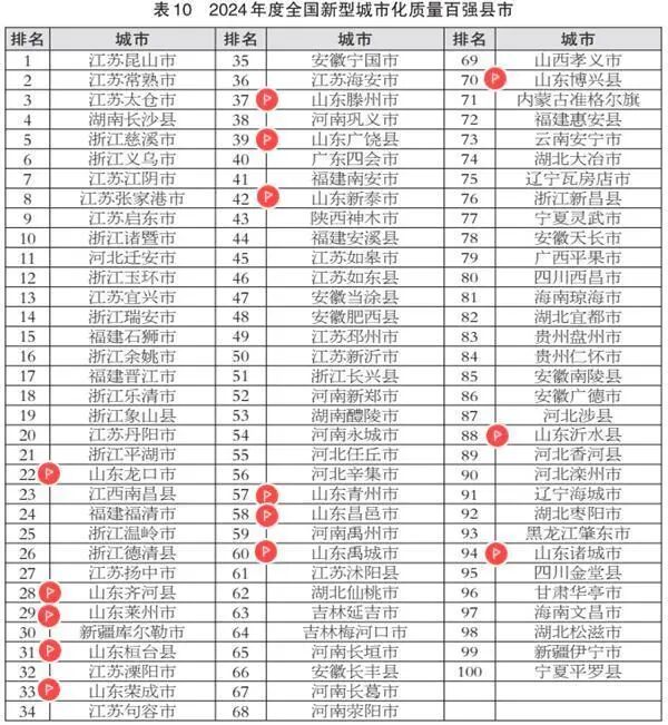 龙口市、齐河县、莱州市、桓台县、荣成市、滕州市、广饶县、新泰市、青州市、昌邑市、禹城市、博兴县、沂水县、诸城市等14地入选2024年度全国新型城市化质量百强县市。