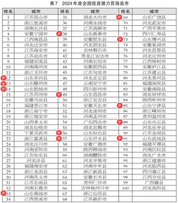 齐河县、滕州市、肥城市、禹城市、新泰市、昌邑市、桓台县、沂水县、广饶县、博兴县、宁津县、庆云县、武城县等13地入选2024年度全国投资潜力百强县市。