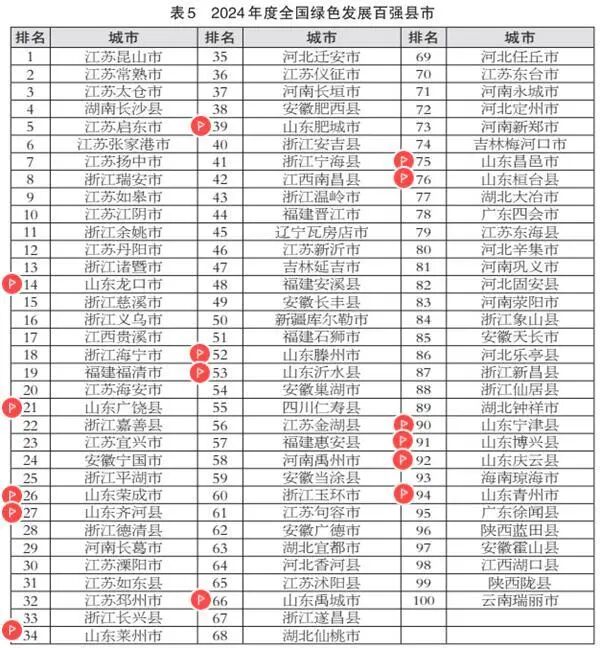 龙口市、广饶县、荣成市、齐河县、莱州市、肥城市、滕州市、沂水县、禹城市、昌邑市、桓台县、宁津县、博兴县、庆云县、青州市等15地入选2024年度全国绿色发展百强县市。