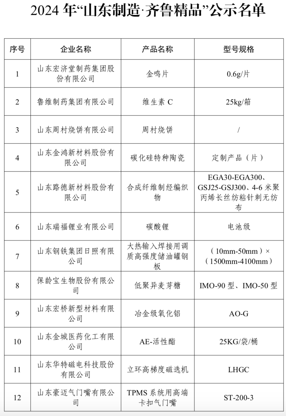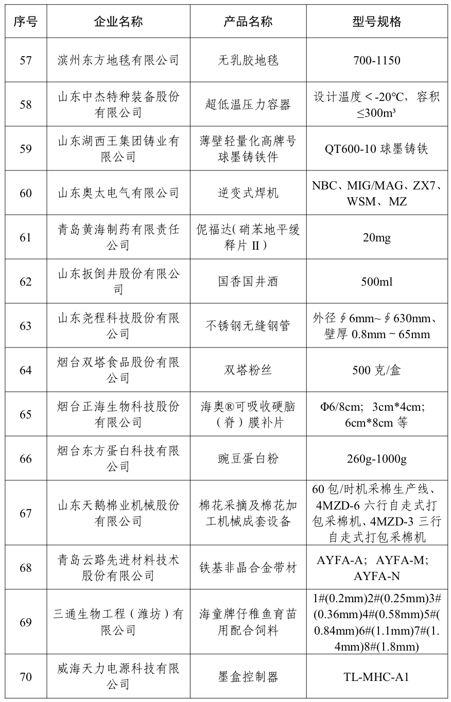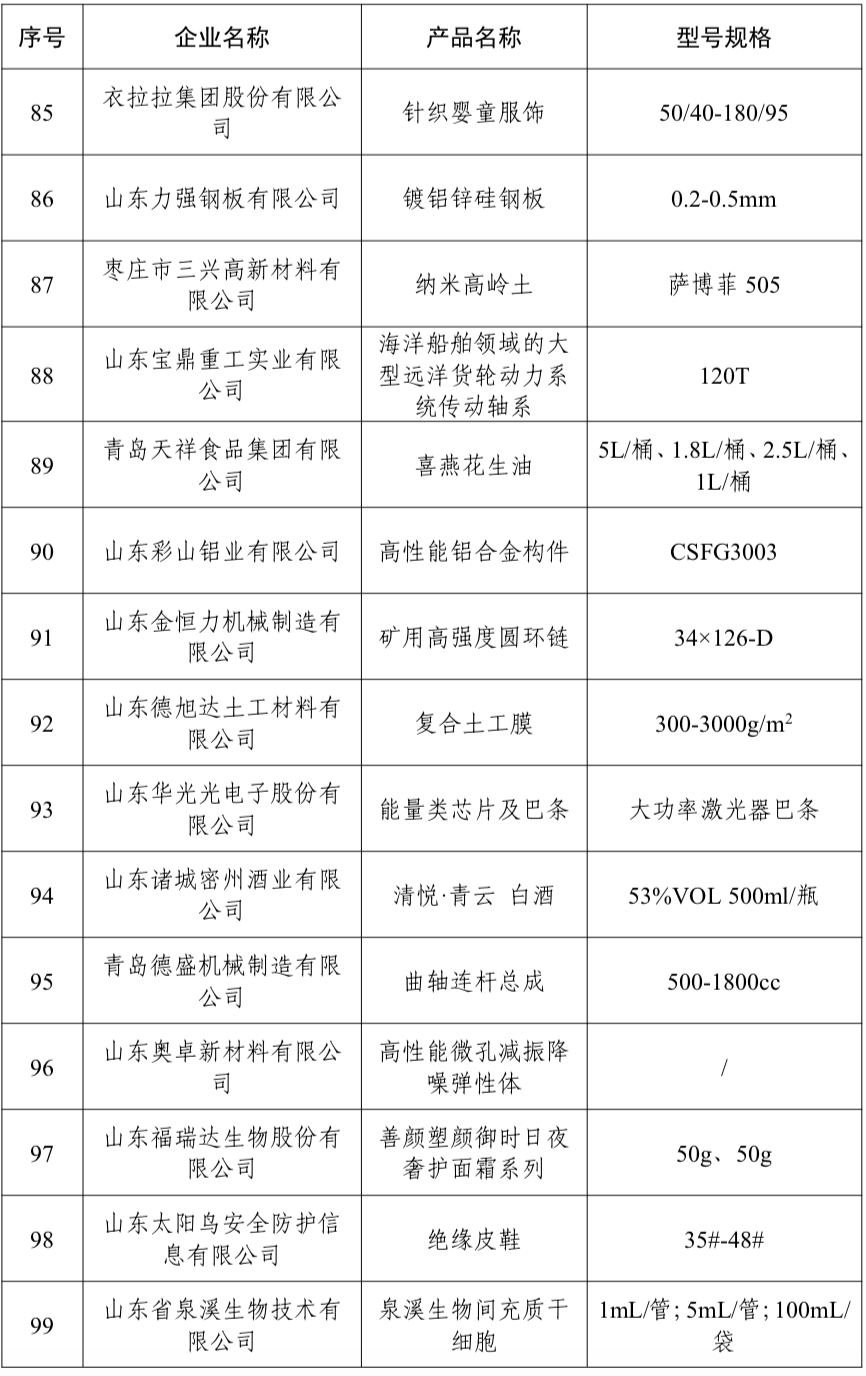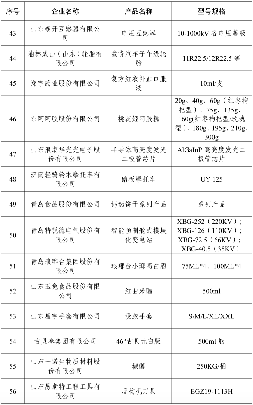 公示了2024年“山东制造·齐鲁精品”名单