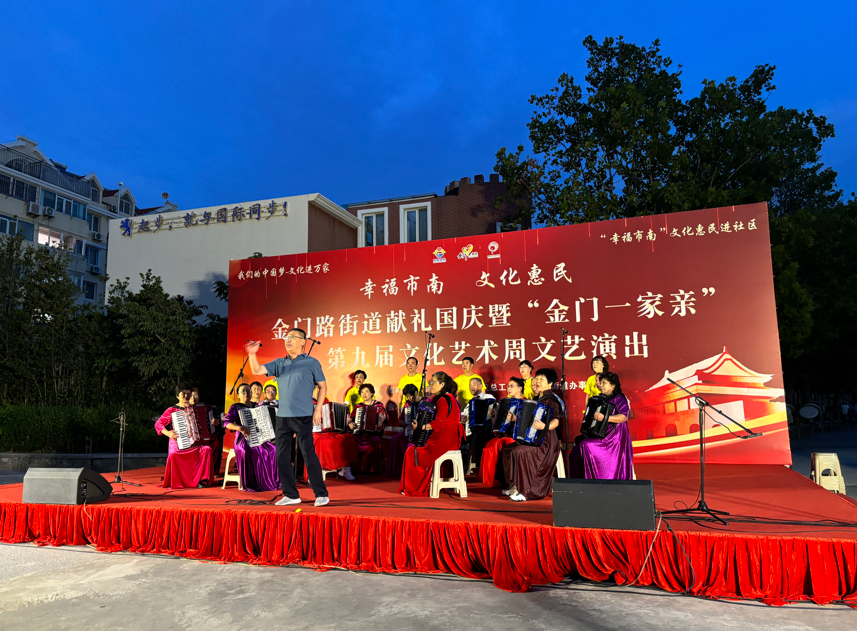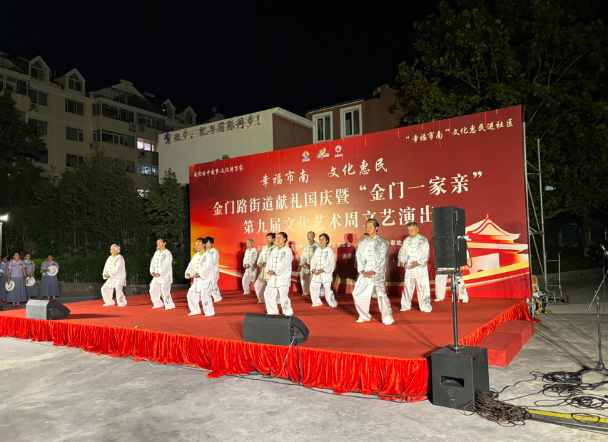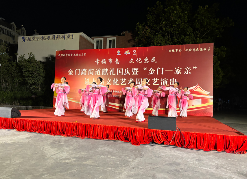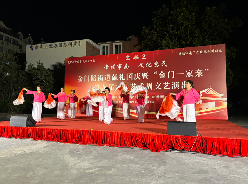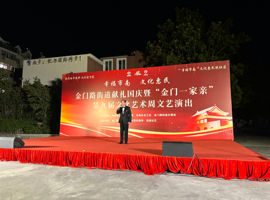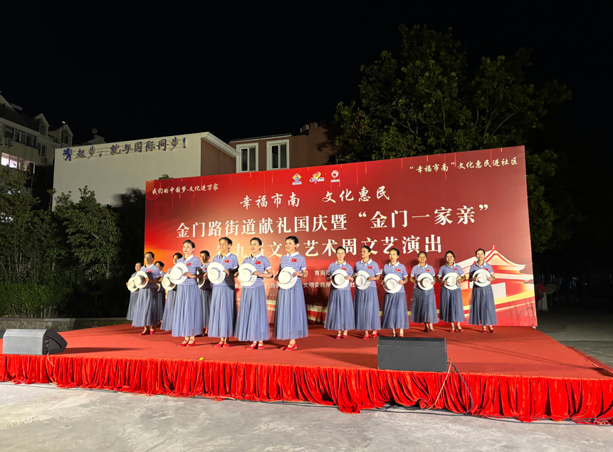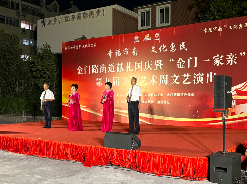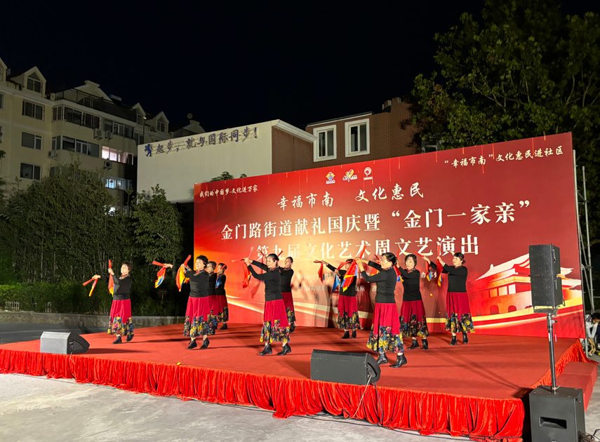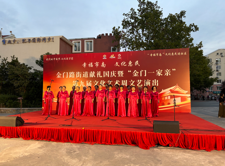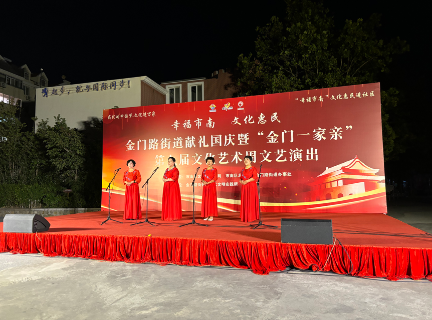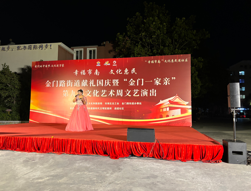 金秋送爽,丹桂飘香。为庆祝中华人民共和国成立75周年,努力营造社区和谐向上、健康文明的文化氛围,9月23日晚,金门路街道献礼国庆暨“金门一家亲”第九届文化艺术周文艺演出在逍遥花园开演。本次活动由市南区文化和旅游局、市南区总工会、金门路街道办事处主办,由金门路街道新时代文明实践所、逍遥社区承办。来自街道6个社区的文化队伍齐聚舞台,为祖国献上最真挚的祝福,共同见证祖国的繁荣昌盛,书写新时代的美丽华章。