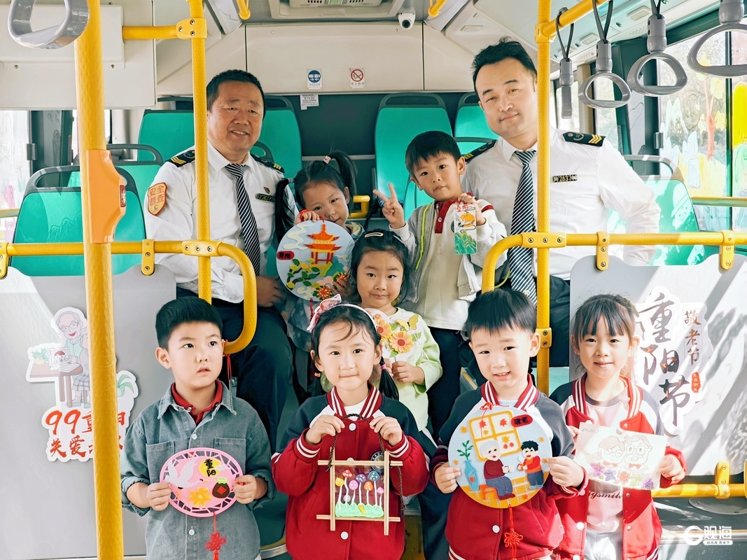 8日上午,李沧巴士公司318路公交车驶入沿线的李沧区百果树幼儿园,公交联合学校共同开展“童绘心声 情乐融融”重阳节主题活动,携手打造“爱心敬老”车厢。