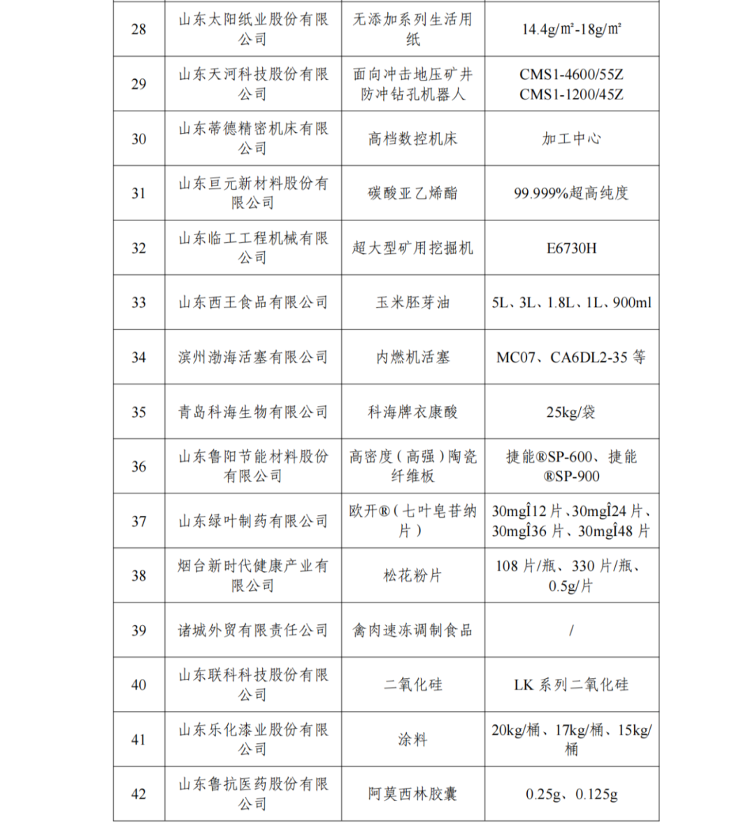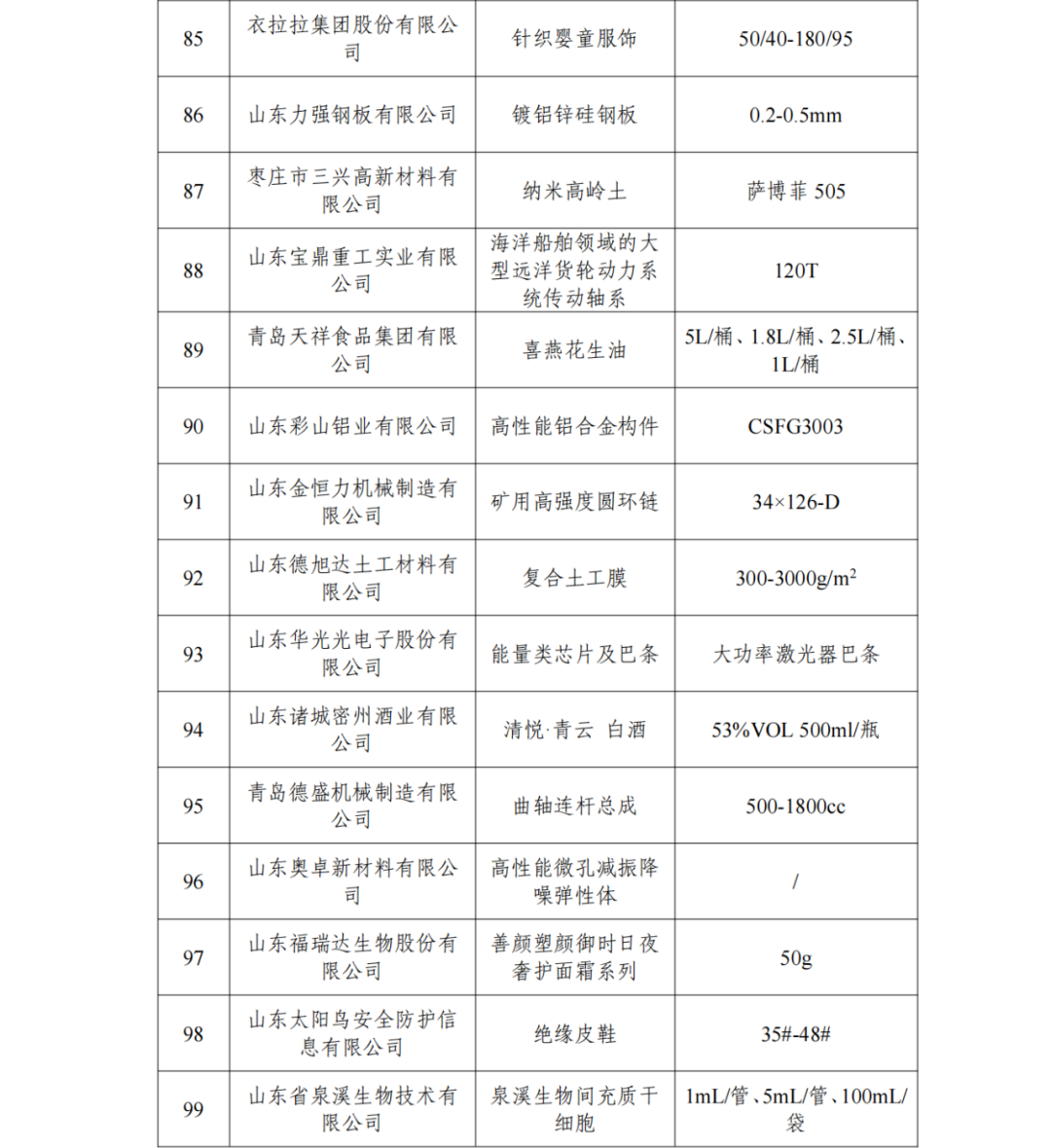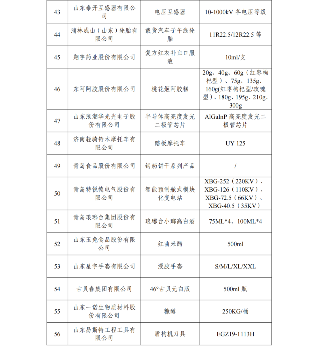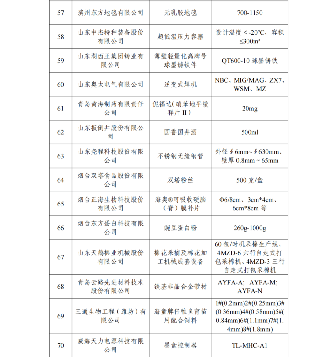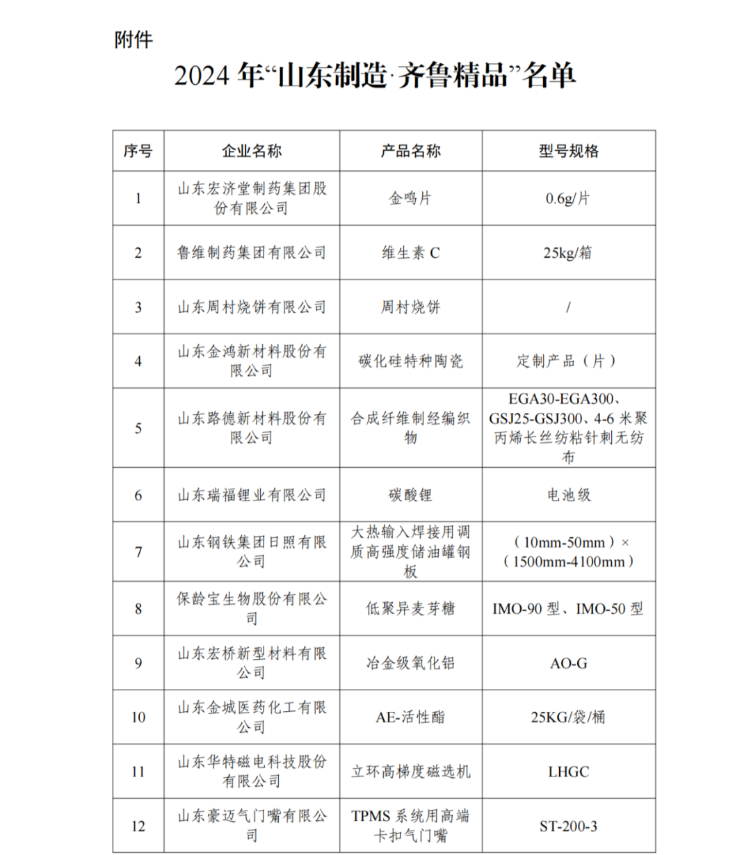 关于公布2024年“山东制造·齐鲁精品”名单的通知