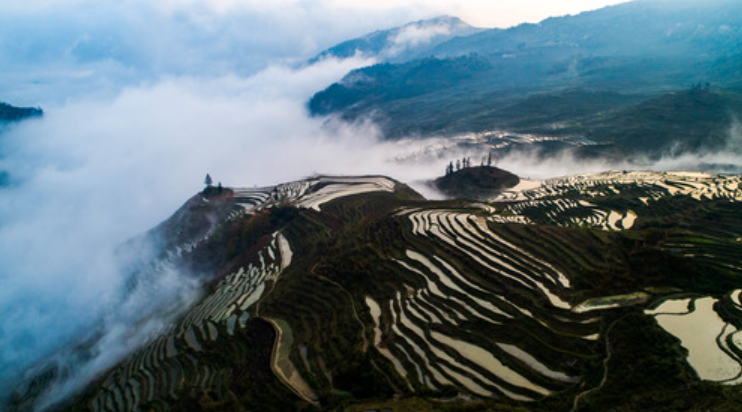 位于云南省哀牢山南部的哈尼梯田随着光线的变换,呈现出一幅幅美丽画卷。新华社记者胡超 摄