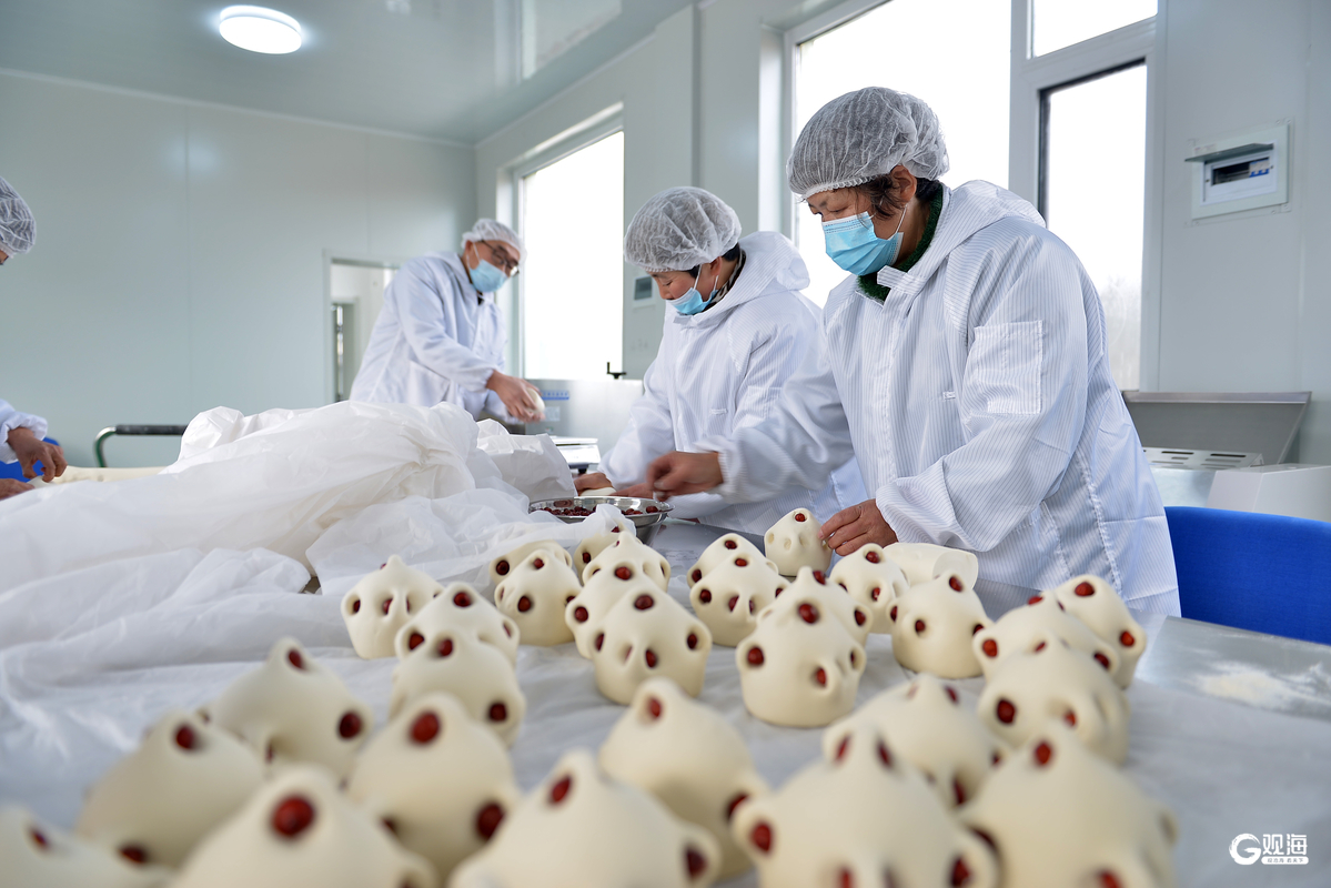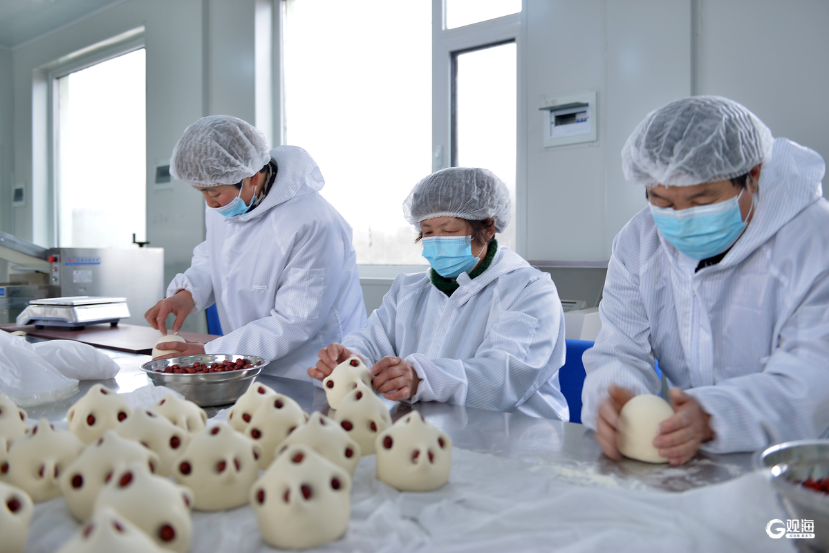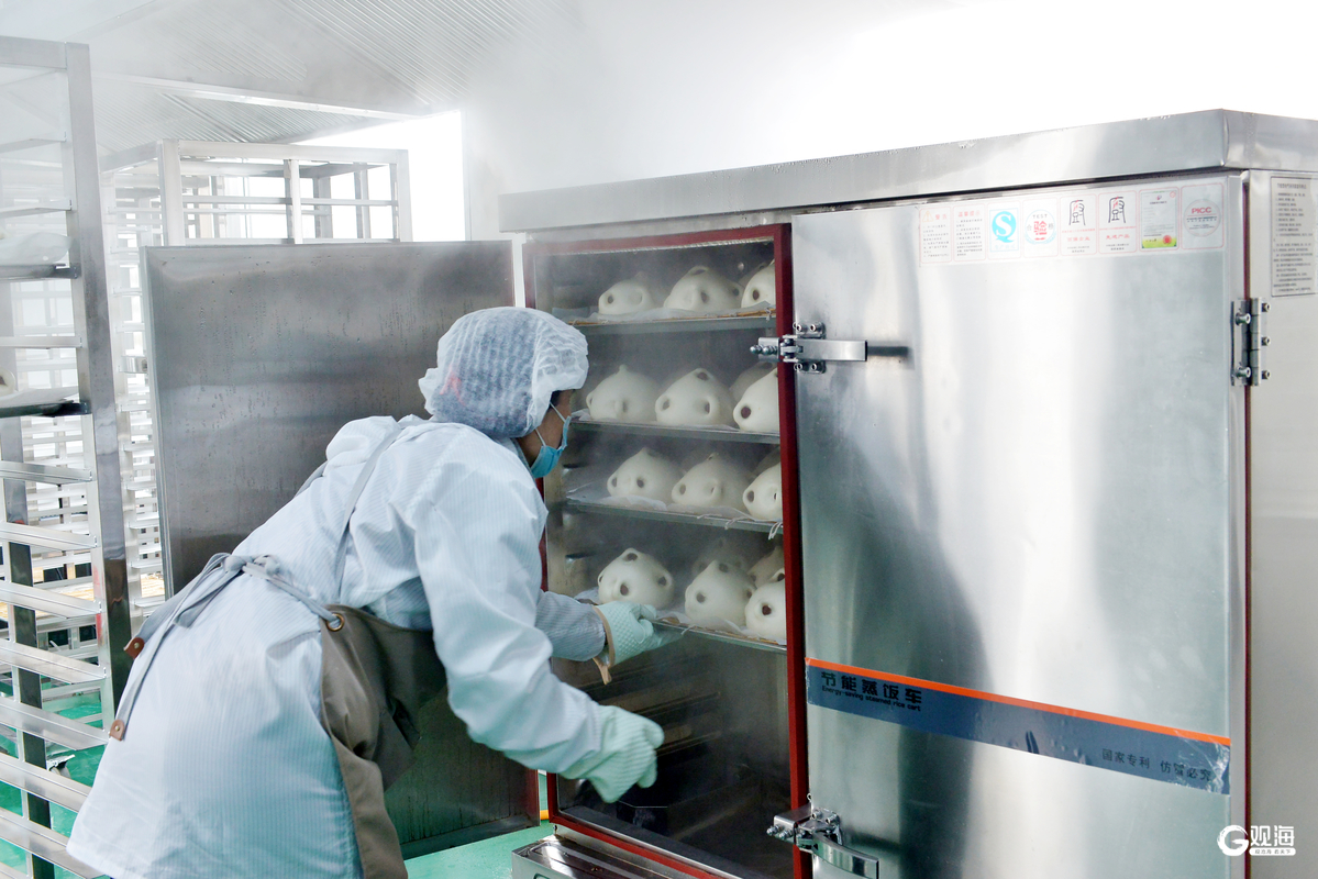“馒头熟了,准备出锅!”上午9点半,位于西海岸新区海青镇甜河村的共富海青茶食联营工坊里,伴随着阵阵吆喝声,“青心大姐”们将蒸箱里的笼屉一层层抬下来,热气升腾中,麦香四溢。
