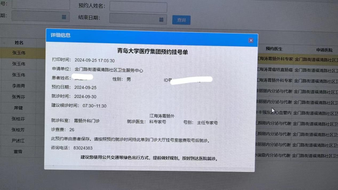 “没想到,真没想到,蹲了三个月都没有挂上的号,在金门路街道福清路社区卫生服务中心看上了。”家住长汀路的居民孙阿姨再次走进金门路街道福清路社区卫生服务中心,向家庭医生表达感谢,并成功预约了10月17日扈主任的专家号。原来,孙阿姨是一名慢性胃炎患者,半年前往青岛大学附属医院中医科扈主任门诊就诊,疗效显著。然而,扈主任是岛城消化系统疾病治疗中医领域专家,慕名而来的患者络绎不绝,线上号源经常一放出就被“秒杀”一空。