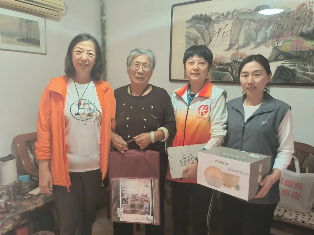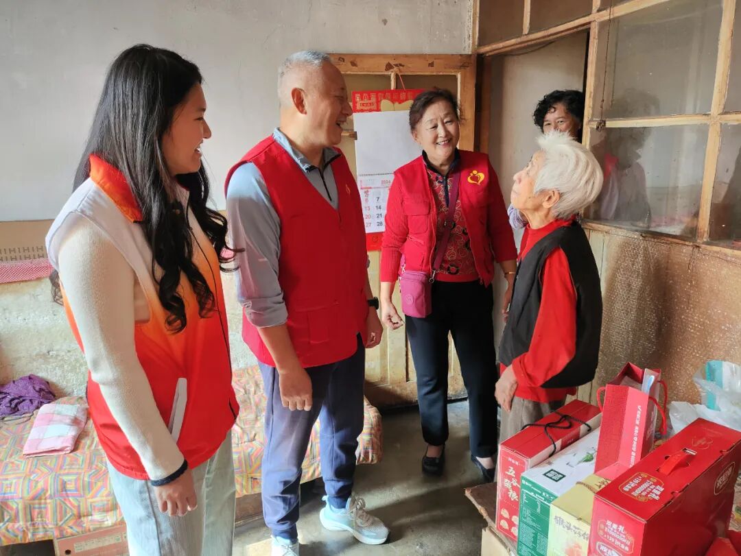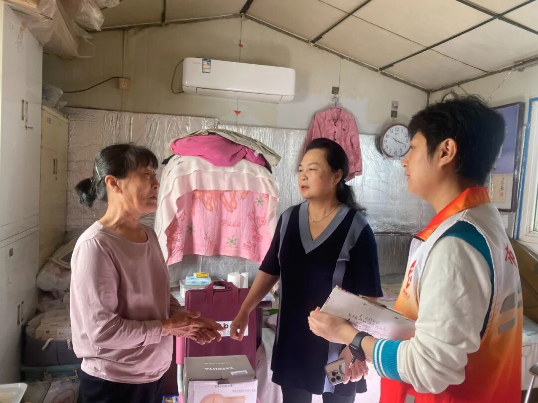 “阿姨,最近身体怎么样?”“挺好的,感谢党和政府对我的关心,也谢谢你们一直以来这么惦记着我,生活在这个好时代太幸福了。”老人用质朴的话语表达着自己对于社工到来的感谢。每到一户,社工和志愿者们在给老人送上爱心物资的同时,也会与他们进行温馨的交流,关心老人们的身体状况,耐心倾听他们的心声和需求。同时,社工和志愿者还叮嘱老人早晚添衣以防秋寒,提醒老人注意身体健康,让老人们感受到浓浓的关怀与温暖。