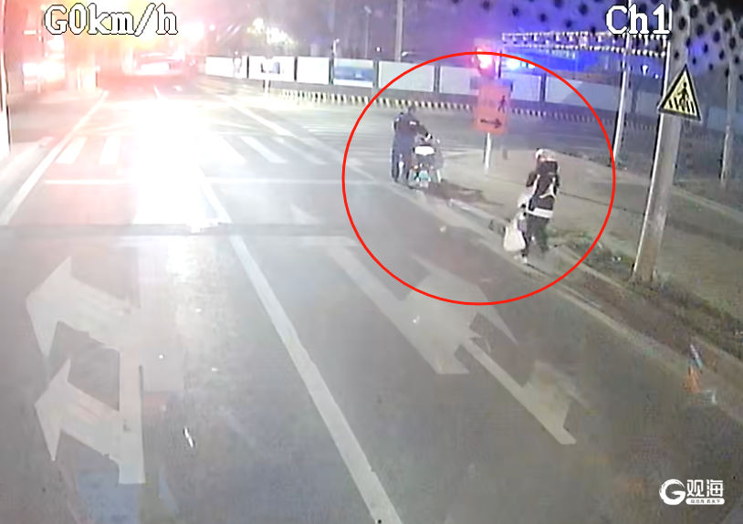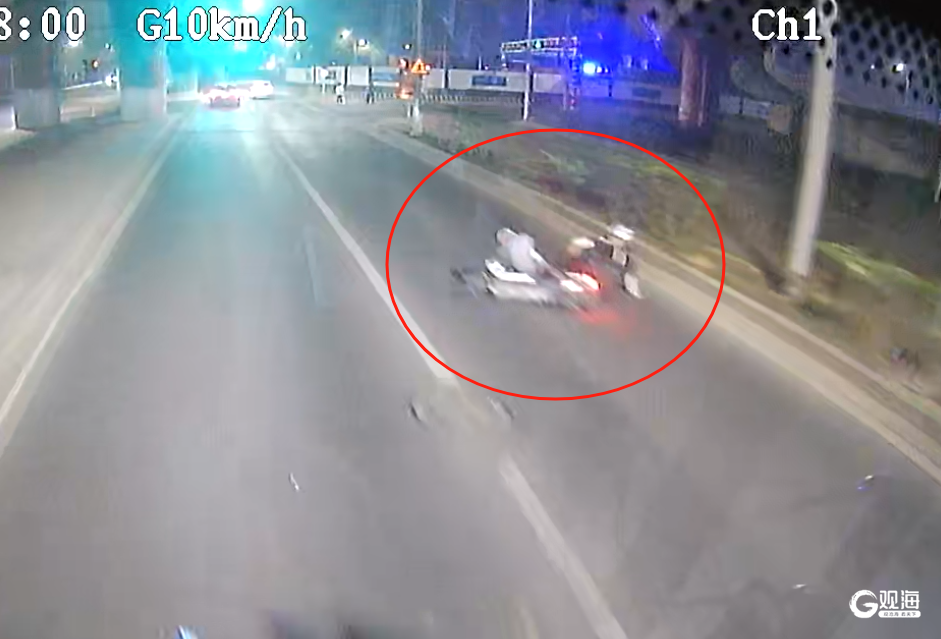 市民骑行摔倒,夜幕里冲出两个身影