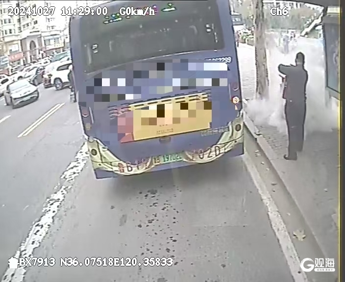 这一幕发生在10月27日上午。当天,314路驾驶员徐茂在途经海信立交桥南站时,敏锐地注意到垃圾桶正冒出火焰。为了确保乘客和周边环境的安全,他迅速将车辆停稳在安全区域后,立即拿起车内的灭火器,快速奔向火源。徐茂凭借冷静的判断与专业的灭火技能,对准火源迅速进行灭火操作,短时间内将火势成功扑灭。为了防止火情复燃,他又仔细检查并确认火源完全熄灭后,才安心回到车内继续完成营运任务。徐茂的迅速反应与冷静处置,不仅防止了可能出现的更大火情,也保障了乘客的安全。路人们纷纷为徐茂的见义勇为的行为点赞。