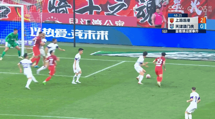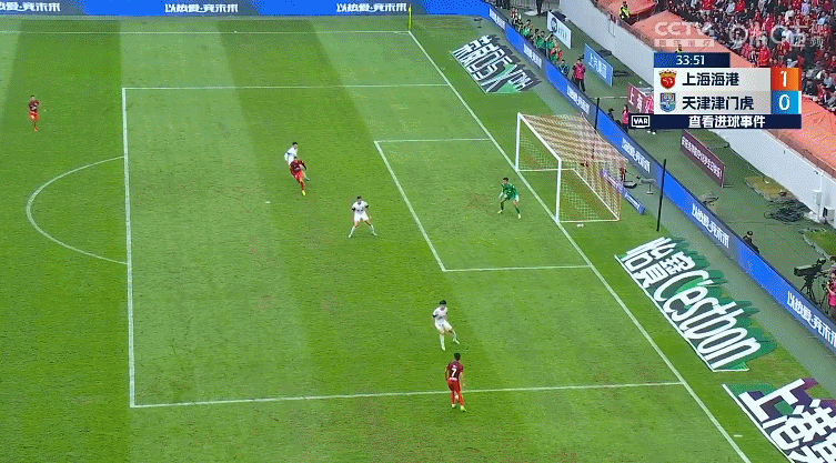 中超第30轮,上海海港主场迎战天津津门虎。上半场开场不到4分钟,奥斯卡右侧开出角球,武磊前点头摆渡,奇塔迪尼后点飞身垫射首开记录;第34分钟,武磊左路传中,巴尔加斯包抄后点完成破门,尽管方镜淇在门线后将球挡出,但VAR介入后,确认皮球已经过线。半场战罢,上海海港主场2比0领先天津津门虎。