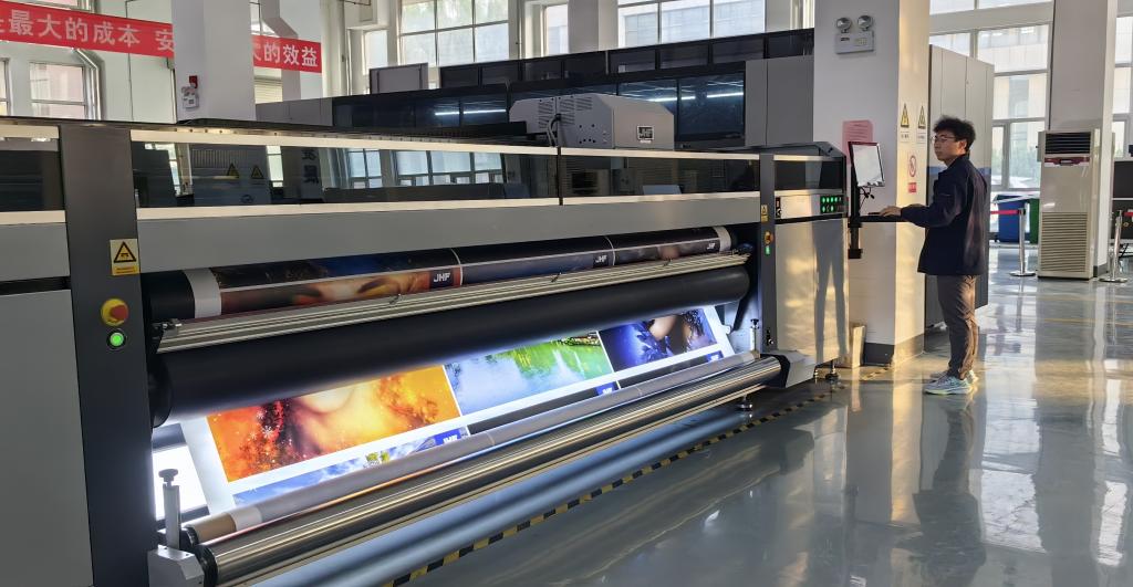打印机除了在纸张上打印,还能打印什么?走进位于济南市槐荫区的金恒丰科技集团产品展厅,只见其自主研发生产的工业打印机正匀速“吐出”印有精美图案的广告布。在这里,布料、地板砖、电路板都可以通过打印变得色彩斑斓。
