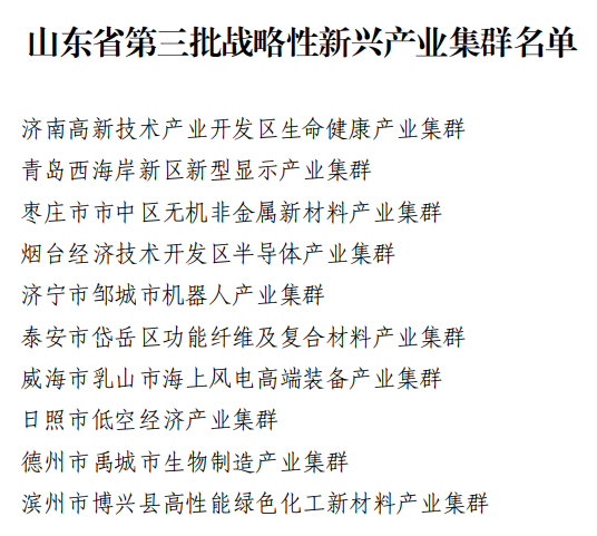 关于公布山东省第三批战略性新兴产业集群名单的通知