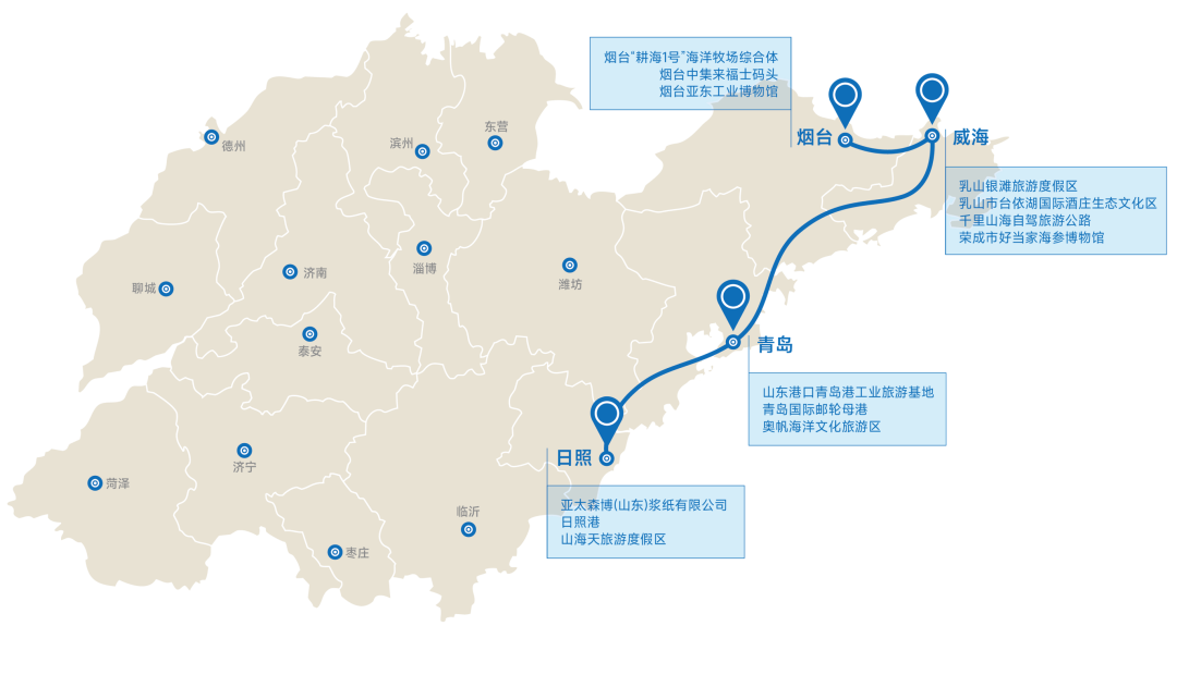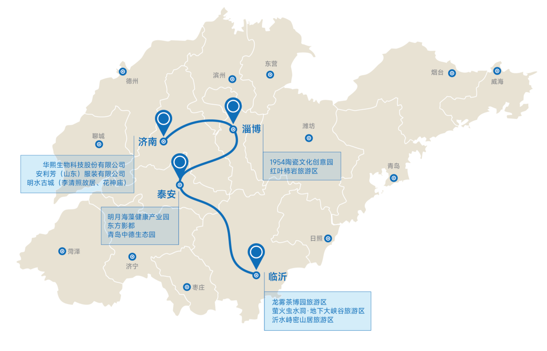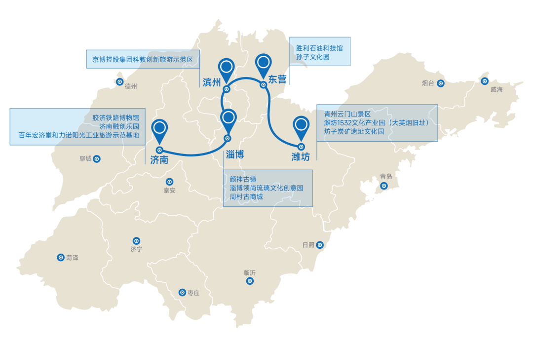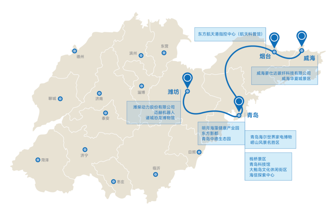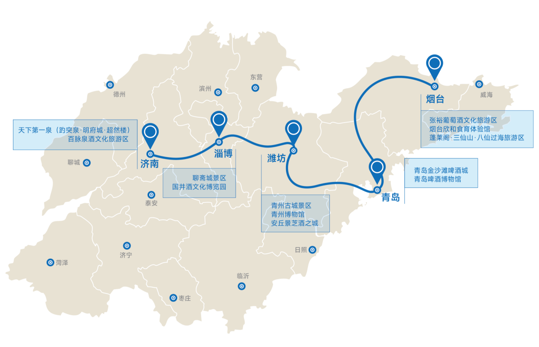 线路行程:济南—淄博—潍坊—青岛—烟台