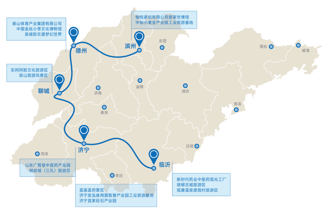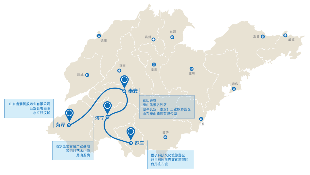 线路行程:济南—泰安—临沂—枣庄—济宁