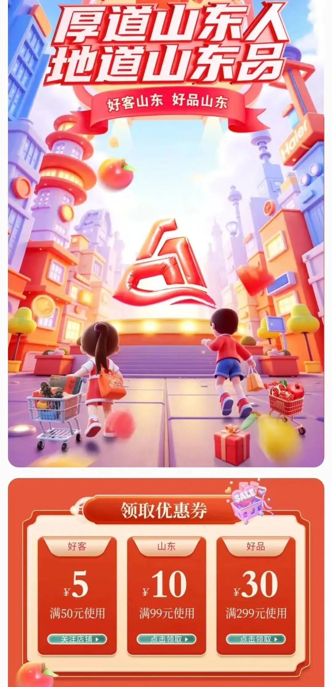 这个双十一想购买山东好品的小伙伴,可以通过淘宝天猫、京东、抖音、快手、美团等平台,搜索“好客山东 好品山东”等关键词进入专区线上逛街。