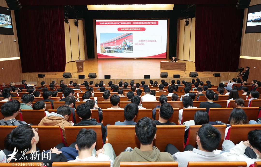 林武以“担起时代重任 勇做改革先锋”为题进行讲授,系统宣讲党的二十届三中全会精神,全面阐述山东贯彻落实习近平总书记重要指示要求、进一步全面深化改革的思路举措,并对大学生和青年朋友提出希望。