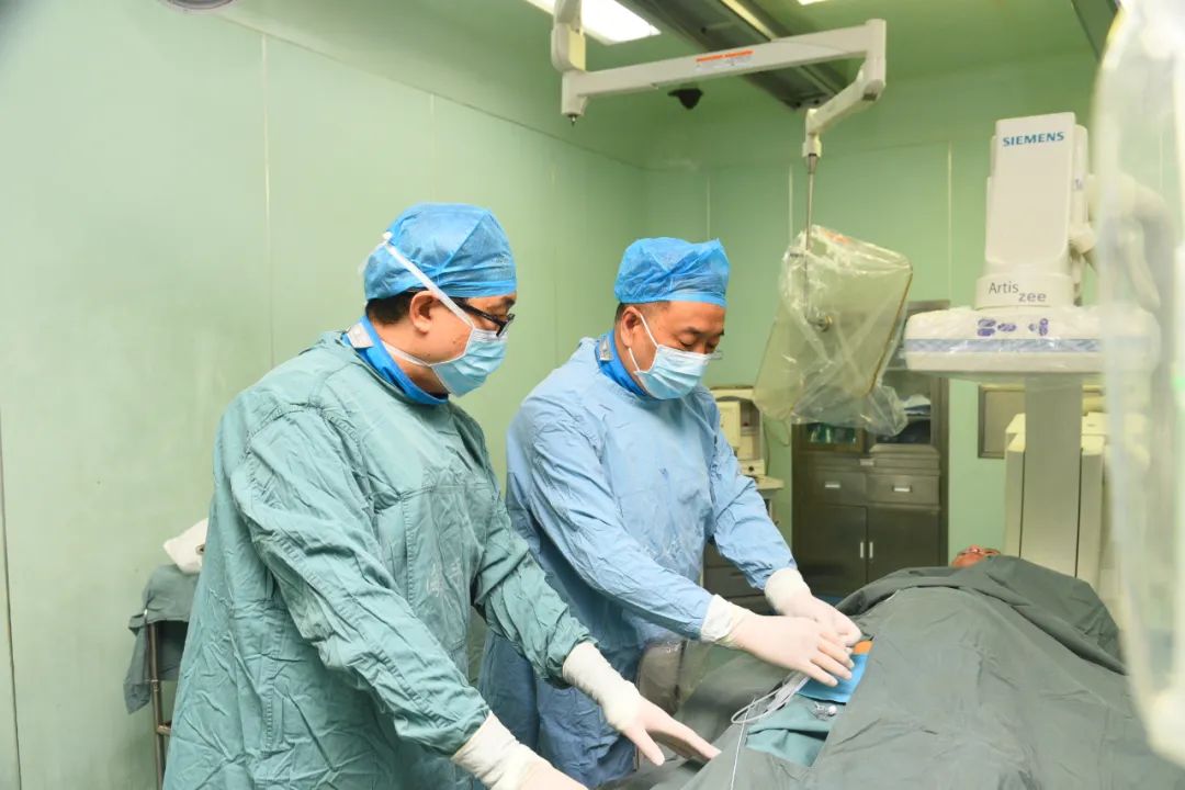 集团神经介入外科主任任成涛、刘永吉副主任医师经过充分的术前准备,带领医护团队在局麻下为患者行左侧颈内动脉起始部狭窄球囊扩张术+脑保护伞下支架成形术,手术时间短,术后患者恢复良好,右侧肢体麻木症状好转,还偶有头晕。数月后,神经介入外科专家团队在患者脑血管造影复查时(左侧颈内动脉狭窄未复发),同时局麻行左侧椎动脉起始部特重度狭窄球扩支架成形术,患者头晕症状也有所减轻。