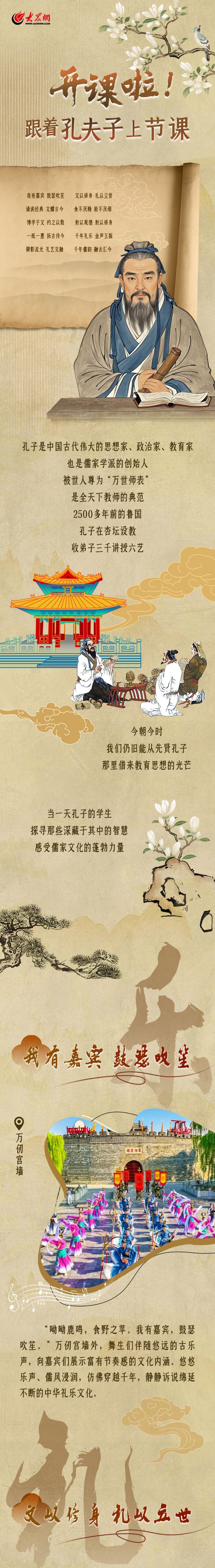 何以中国丨开课啦!跟着孔夫子上节课! 2024-11-28 18:42 大众网 0 天不生仲尼,万古如长夜。孔子是中国古代伟大的思想家、政治家、教育家,也是儒家学派的创始人,被世人尊为“万世师表”。当一天孔子的学生,学习礼仪文化,争做明礼少年。 记者 李慧 济宁报道 责任编辑:单蓓蓓