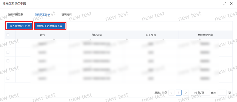 系统自动进入“参保职工名单”页签。下载模板并完善数据,点击导入参保职工名单,上传材料后点击【提交】按钮。核对数据无误后,点击【上报】按钮,进入业务审核流程。审核通过后,可以点击缴费通知单,根据单据进行缴费。