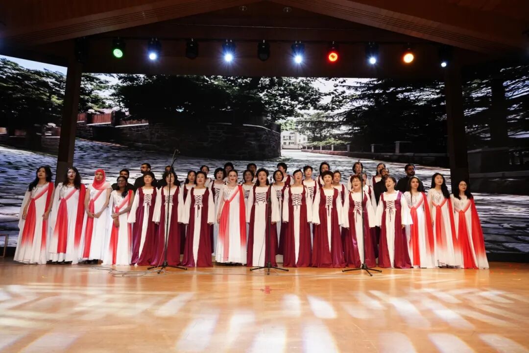由青岛市合唱协会会长古光均先生带队的青岛爱乐合唱团与青岛大学留学生合作演绎了《山楂树》和《葡萄园夜曲》两首经典合唱曲目,深情的旋律让人感受到浓厚的文化氛围与情感共鸣。