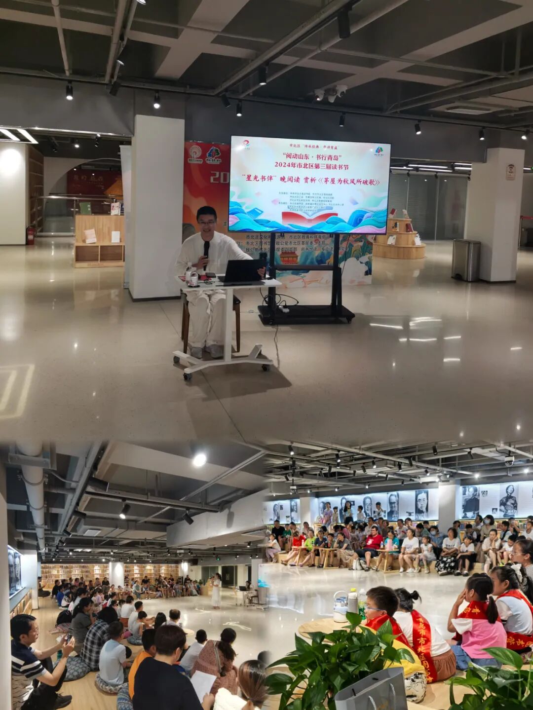 市北区第三届读书节期间,以“共建书香青岛 共享美好阅读”为主题,进一步擦亮了延时服务中的“星光书伴”晚阅读品牌,先后举办了“星光书伴”晚阅读之诗词经典赏品鉴活动12场,以及“星光书伴”晚阅读五四青年节特别活动、“千人读《大学》”、“相约学社 秋韵华章”读书交流”,著名作家殷健灵老师读者见面会,“经典诵读·开卷有益·文学漫步”美育课堂,国际家庭日市北区家庭故事分享会暨爱心图书捐赠等活动,参与惠及读者3000余人次。线上关注读者数万人次。
