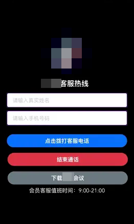 点击链接后,便跳转到了某平台客服热线页面,页面上要求填写名字、电话,还有拨打客服电话、结束通话、下载会议APP等按键。因之前看到过此类骗局,该市民马上退出了界面,未遭受损失。