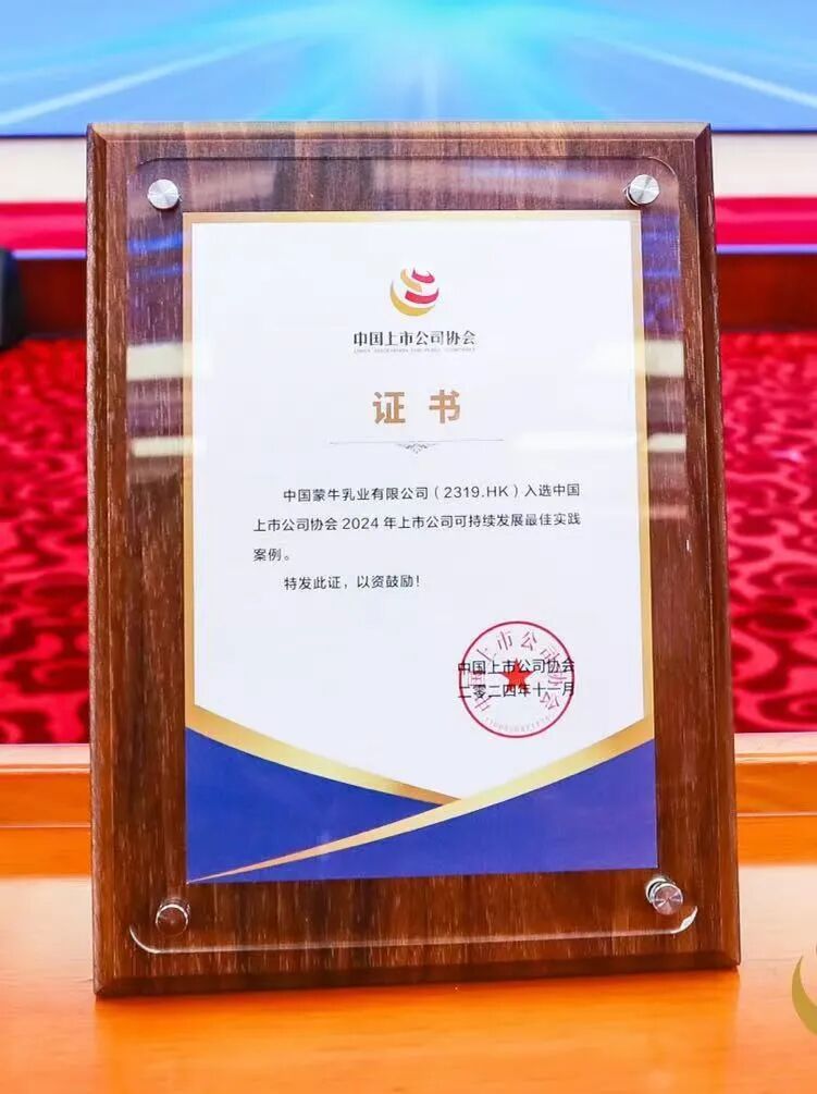 蒙牛案例入选“2024上市公司可持续发展优秀实践案例”
