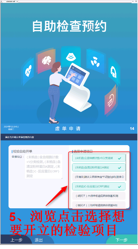 3.自助检验项目根据流行病学特点进行开放,需临床医生结合患者病情可能会开具其它必要的检验检查项目,有二次采集标本的可能。