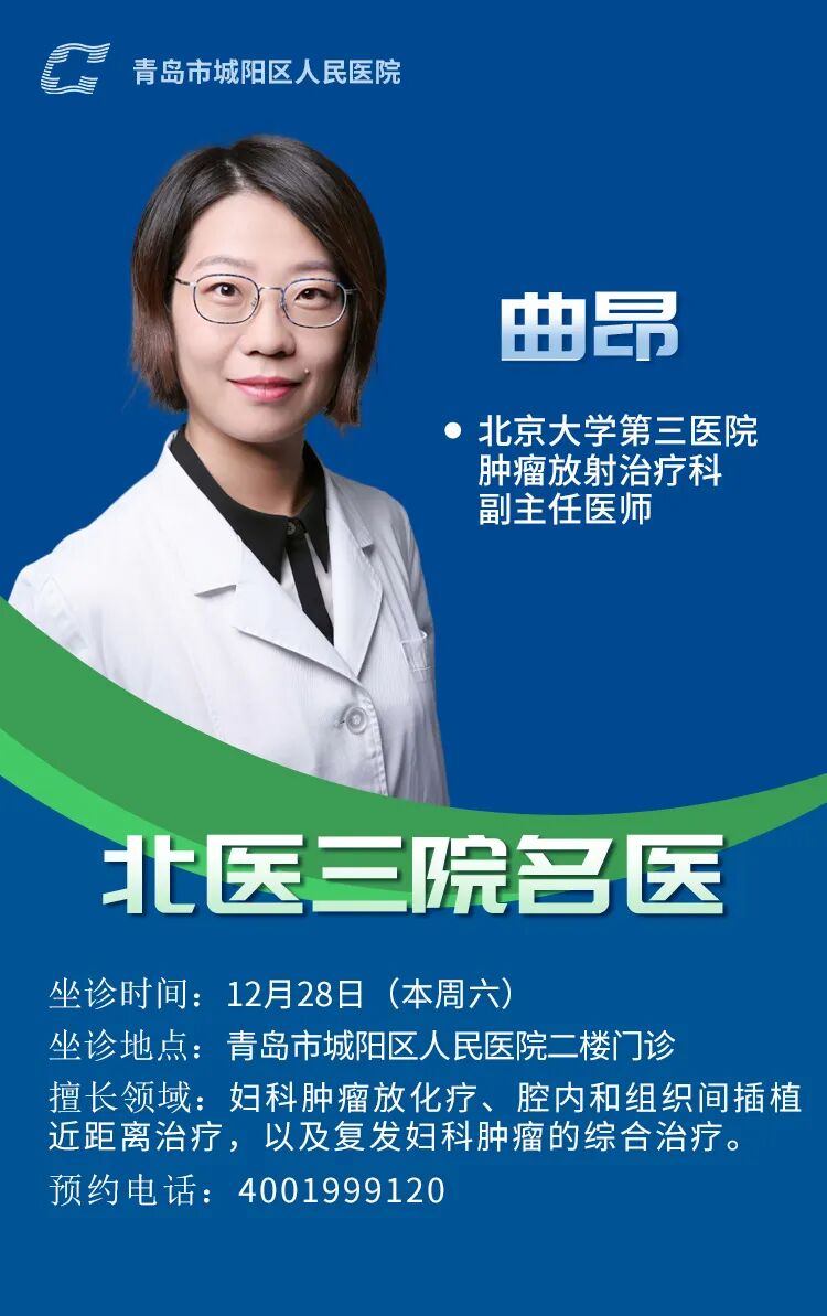 12月28日,北京大学第三医院妇科郭红燕教授和肿瘤放疗科曲昂教授将到青岛市城阳区人民医院坐诊。预约电话:4001999120。目前,北京大学第三医院妇科、肿瘤化疗科、肿瘤放疗科、耳鼻喉科专家每周坐诊医院,名额有限,有需求的市民可预约。