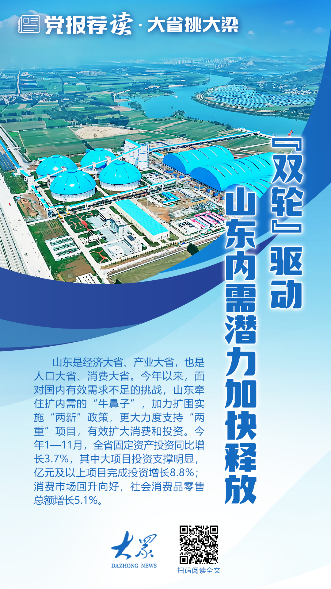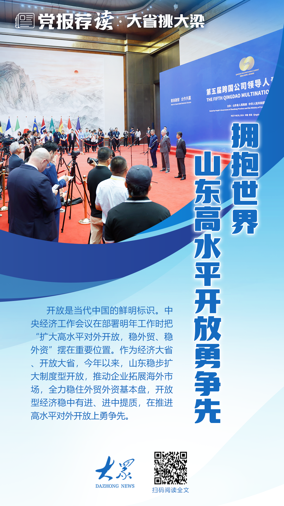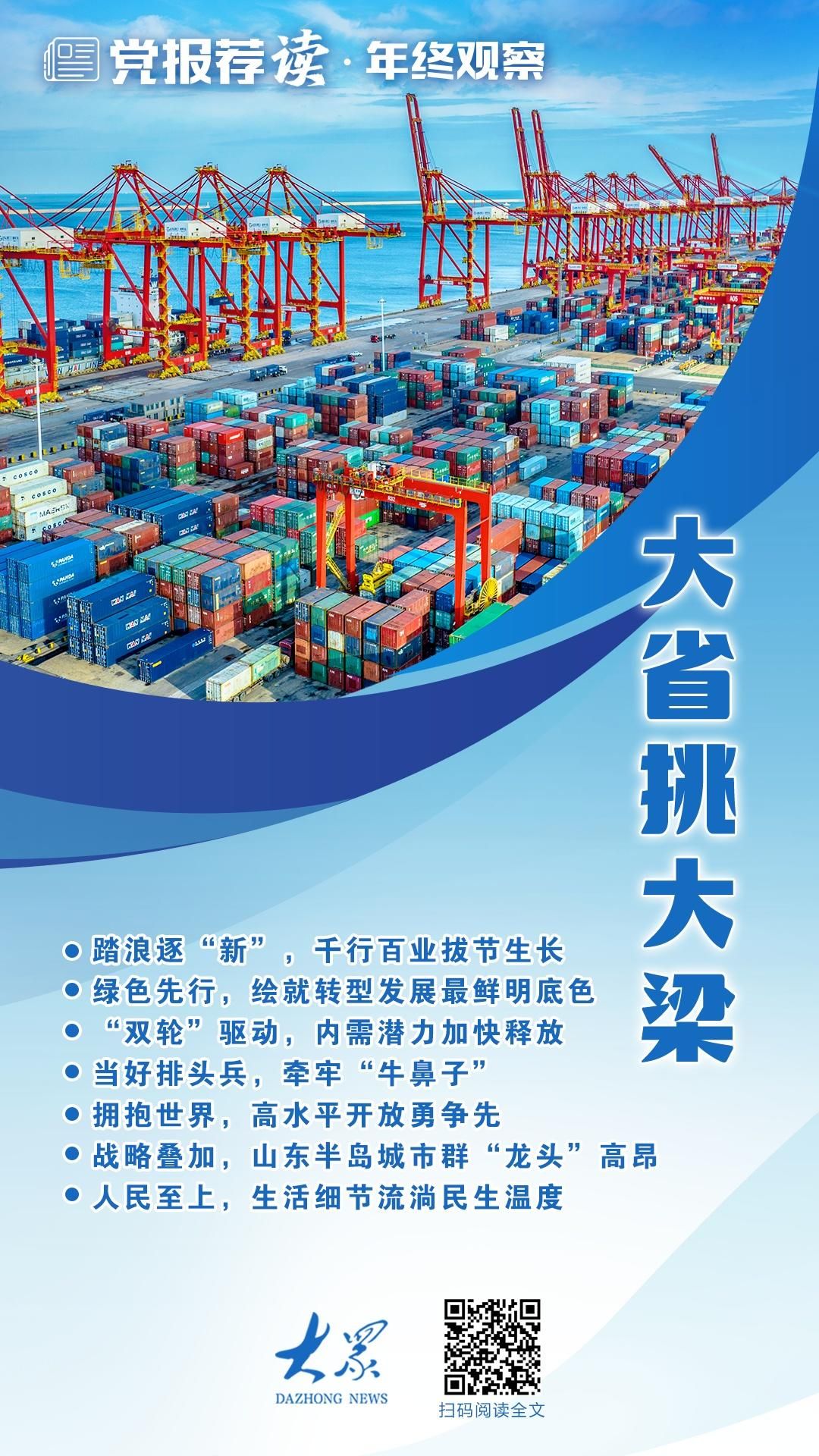 12月18日—24日,大众日报推出7篇重磅述评,从新质生产力稳步发展、绿色低碳转型提速推进、扩大有效投资大力提振消费、在进一步全面深化改革上当好排头兵、推进高水平对外开放、深入落实重大国家战略、民生保障扎实有力等7个方面,展现2024年山东经济社会发展的新作为、新成效,解码山东何以“挑大梁”。