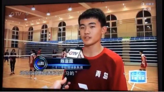 同时,青岛二十一中5名队员又参加了山东省排球锦标赛并入选“希望之星”,成为山东省排球项目的优秀后备人才。他们分别是九年级2班孙志刚、王瑶瑶;八年级2班乔治鑫;八年级10班苏洋;七年级1班陈宣霖。2020年11月23日,21中排球队接受了QTV5《青岛体育报道》的专访,其中两名不仅球技突出,学习成绩也名列前茅的“希望之星”在专访中表达了自己对排球的热爱和对将来的一些希冀。