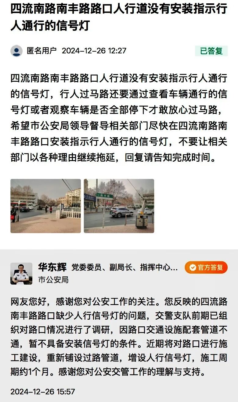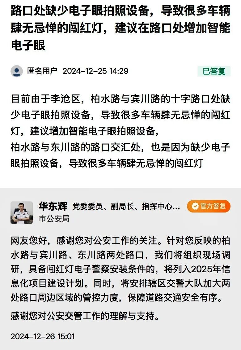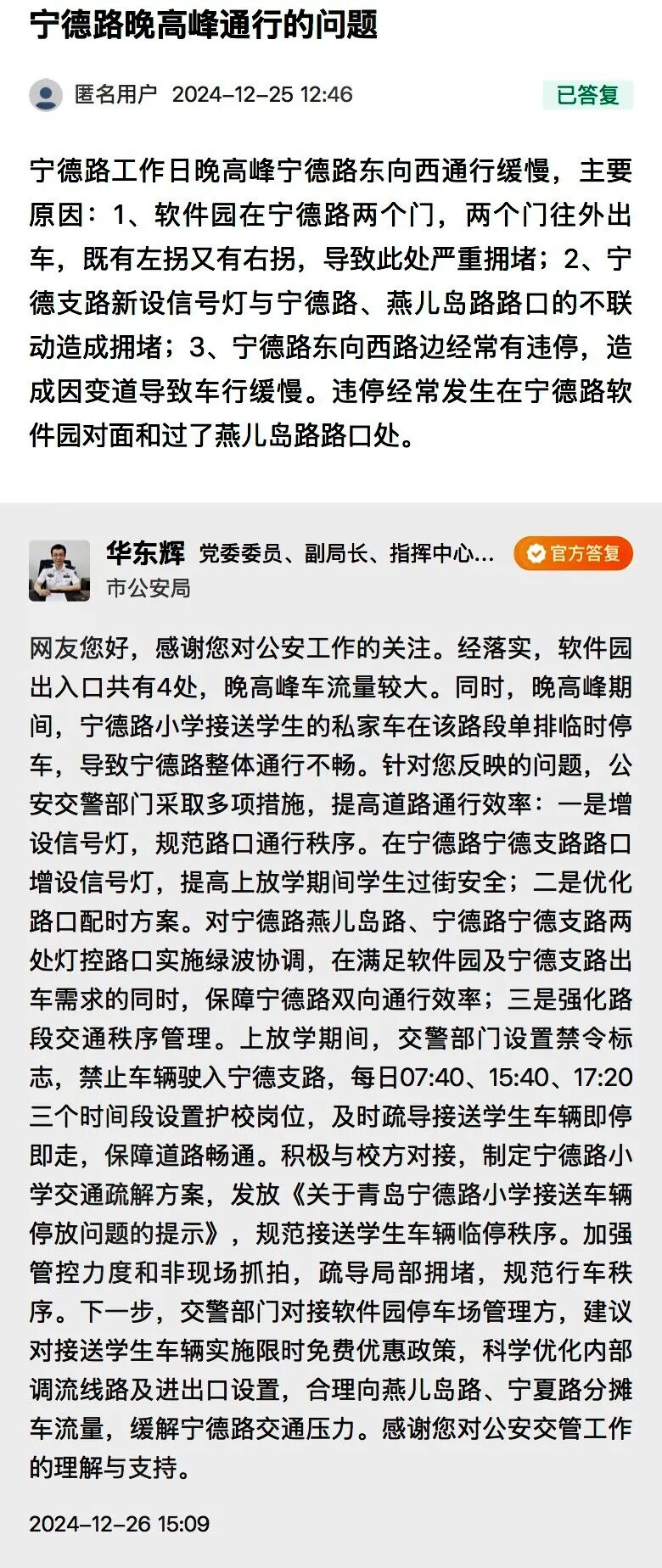 小邱帮问|最新回复!涉及四流南路、宁德路、金水路、柏水路等道路交通问题 2024-12-27 11:23 青岛日报社/观海新闻 0 青岛日报/观海新闻12月27日讯 近日,市公安局党委委员、副局长、指挥中心主任华东辉做客民生在线,与网民在线交流。 四流南路、南丰路路口何时安装信号灯 建议治理金水路160号路边乱停车问题 宁德路晚高峰通行缓慢 建议加装闯红灯拍照设备