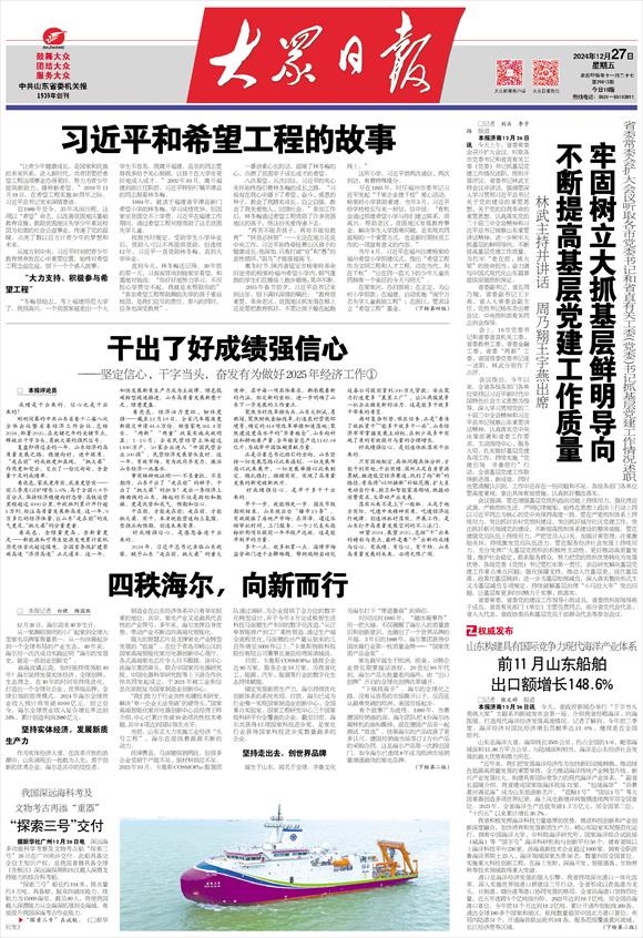 回望2024,展望2025,总结“干”出来的精彩与亮点,最终是要“干”出新的成绩与信心。有成绩、有信心、有干劲,山东高质量发展的未来,必将无限广阔。