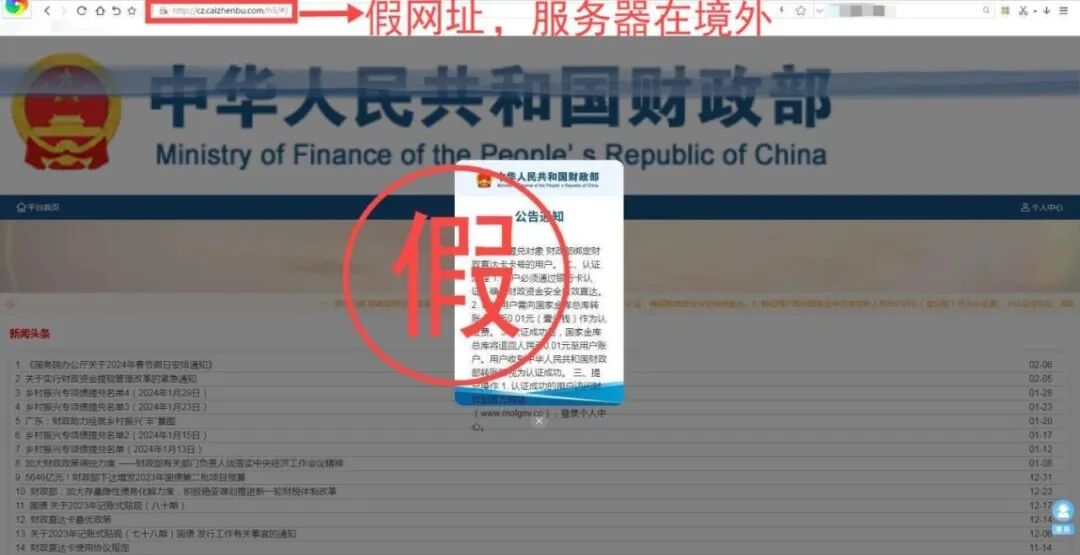 (仿冒财政部相关网站,发布虚假“退税补贴项目”)
