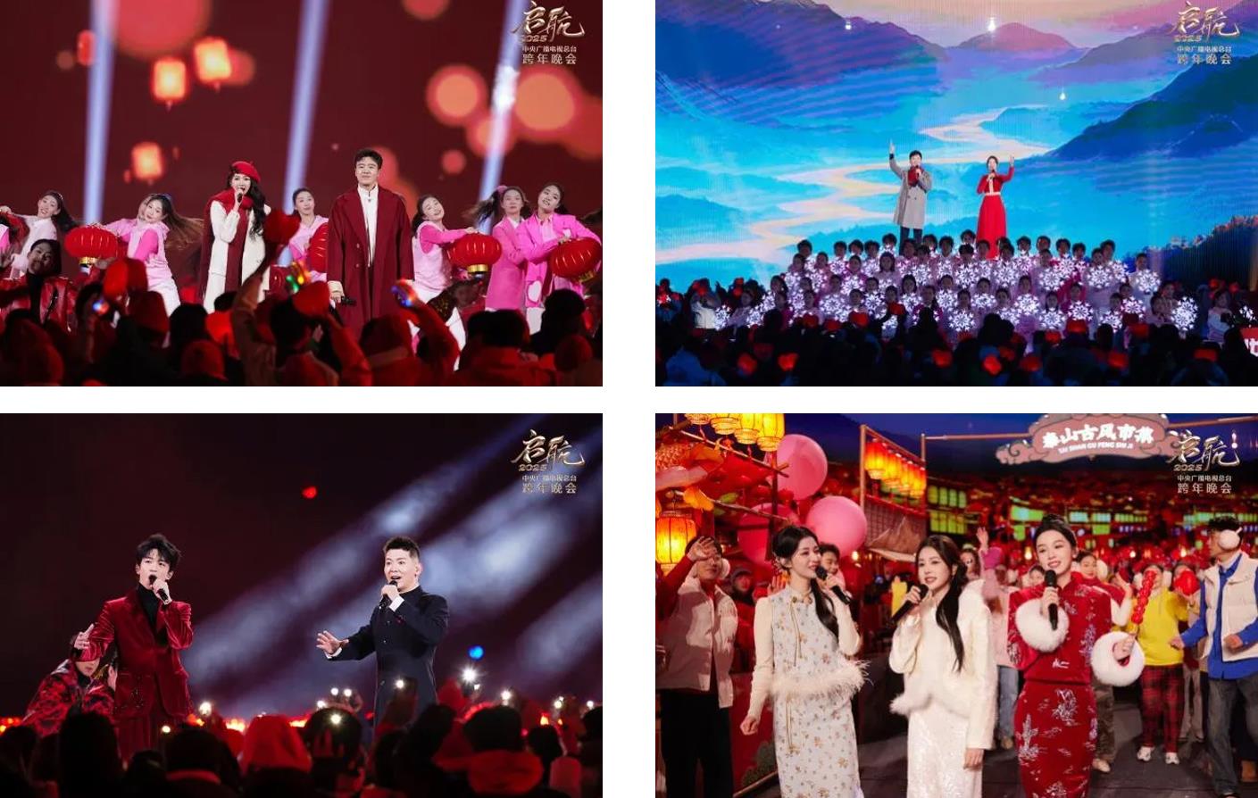 在视觉表达上,晚会打造了沉浸式观演空间,呈现人、景、情相互交融的多元主题演区;还结合XR/AR虚拟现实等科技手段,融入机器人、无人机表演,打造“竖屏看跨年”等新媒体产品,为受众提供更具沉浸感的视听新体验。