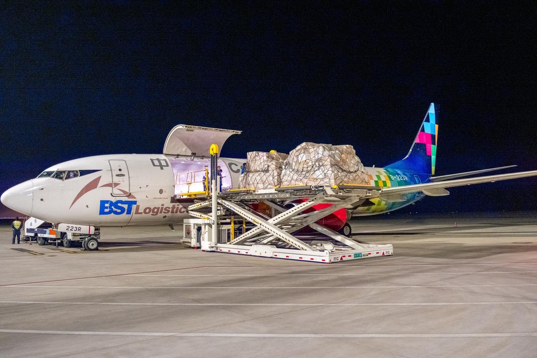 “值得一提的是,这些货物不仅来自山东,还来自华东、华南等周边省市。”山东省机场管理集团烟台国际机场有限公司空港物流公司副总经理宋伟告诉记者,通过陆空联运,中国商品出海更加便利。