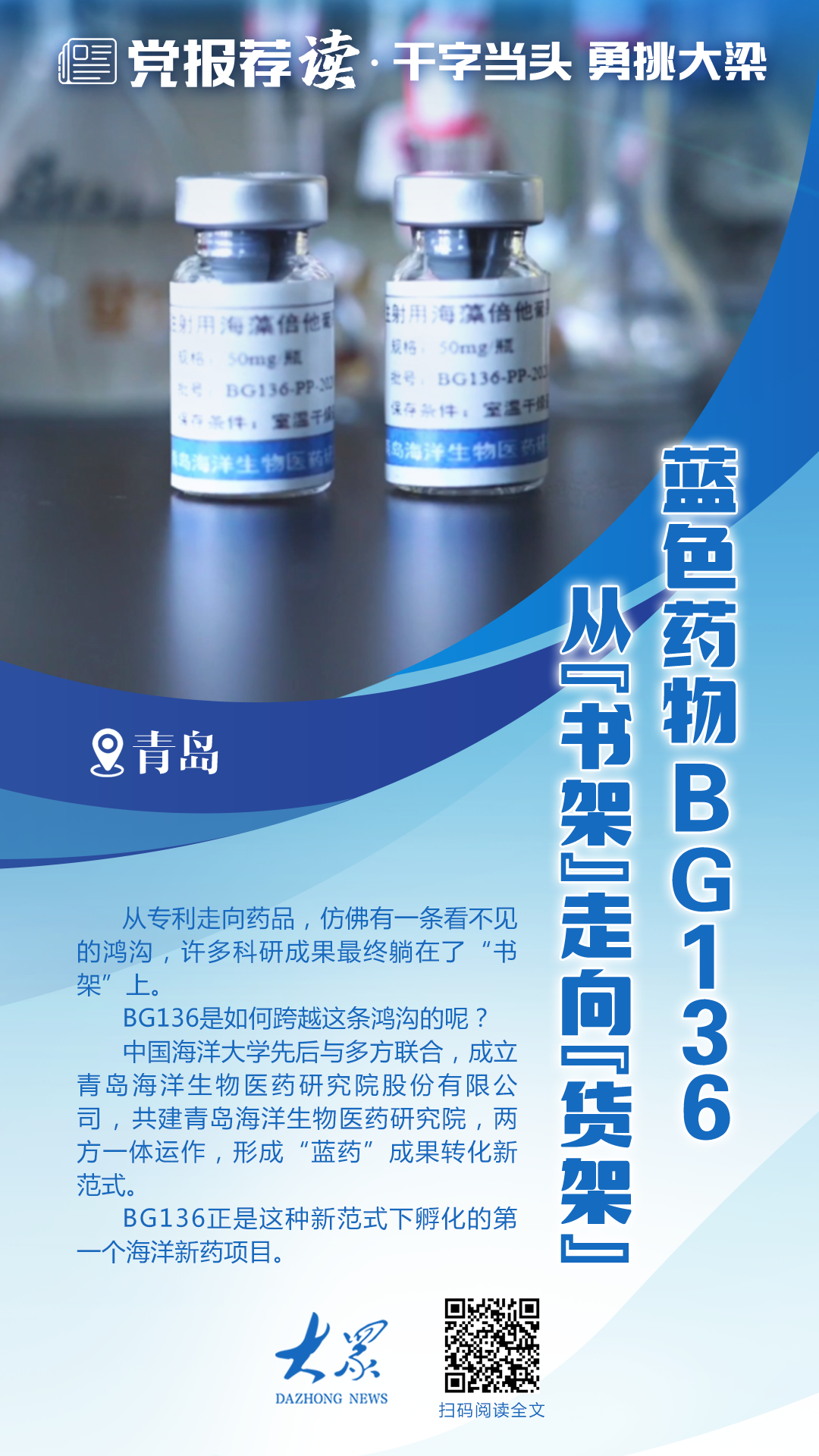 去年12月,在海洋产学研协同创新联盟(青岛)成立大会上,青岛国信制药有限公司与杭州泰格医药科技股份有限公司进行合作签约,开启了海洋一类创新药BG136的临床二期新阶段。