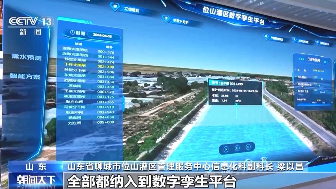山东省聊城市位山灌区管理服务中心信息化科副科长 梁以昌:我们将渠道的物理要素,像渠道水利用系数、糙率、边坡系数等,全部都纳入数字孪生平台,进行方案的预演。