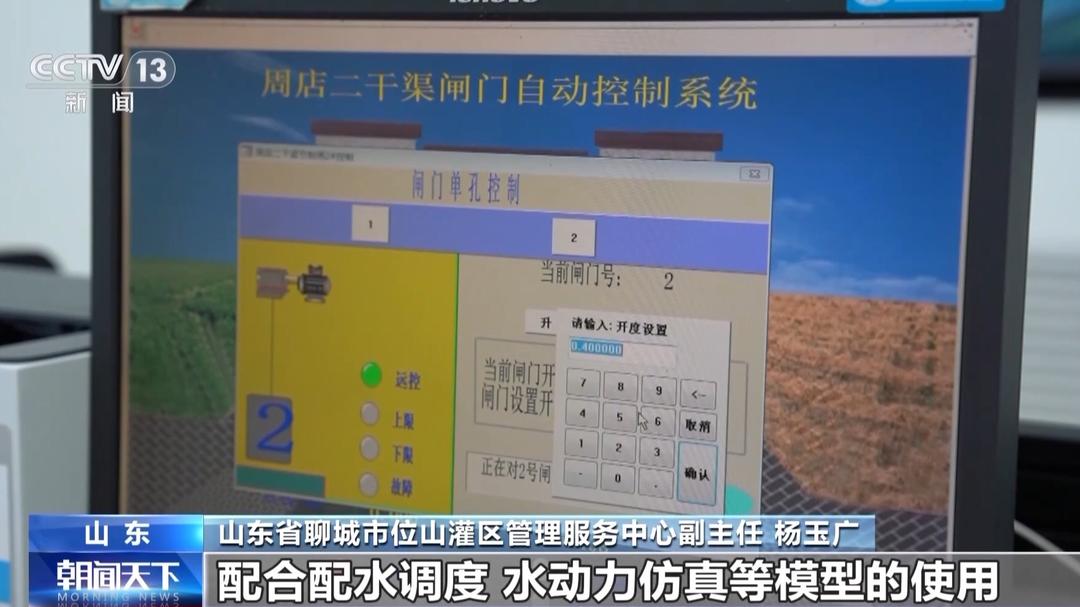 山东省聊城市位山灌区管理服务中心副主任 杨玉广:作物是否需要水,需要多少水,可以通过需水预测模型进行科学计算,配合配水调度、水动力仿真等模型的使用,能够模拟预演供水过程,生成最优配水调度方案。